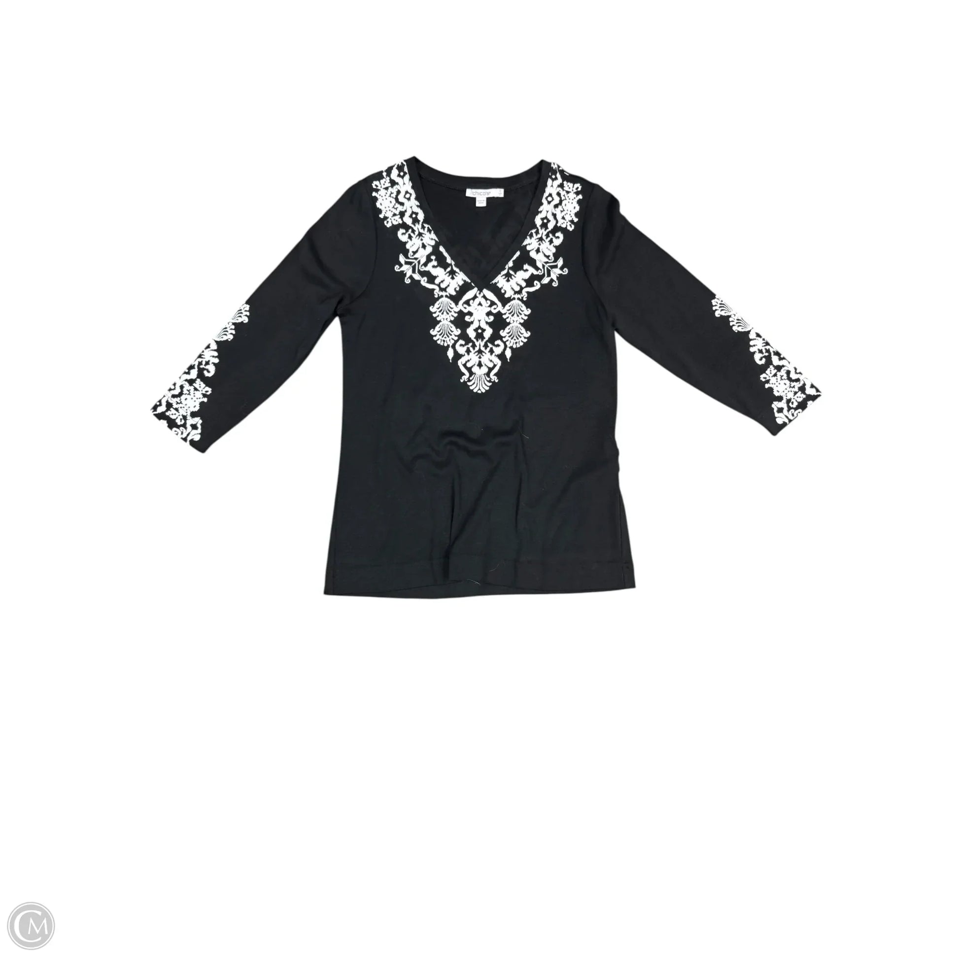 Top 3/4 Sleeve By Chicos In Black & White, Size: S