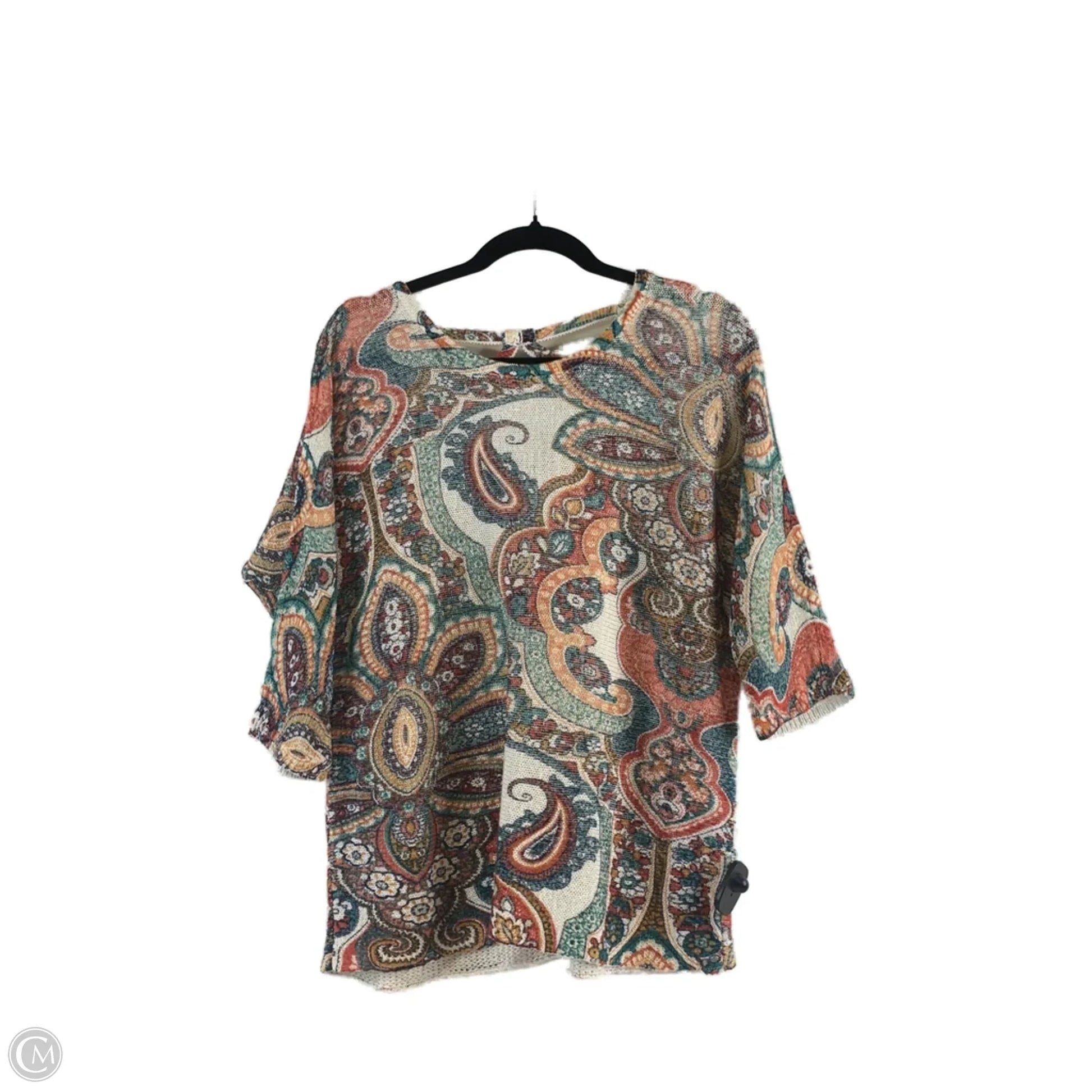 Top 3/4 Sleeve By Chicos In Green & Tan, Size: Mp