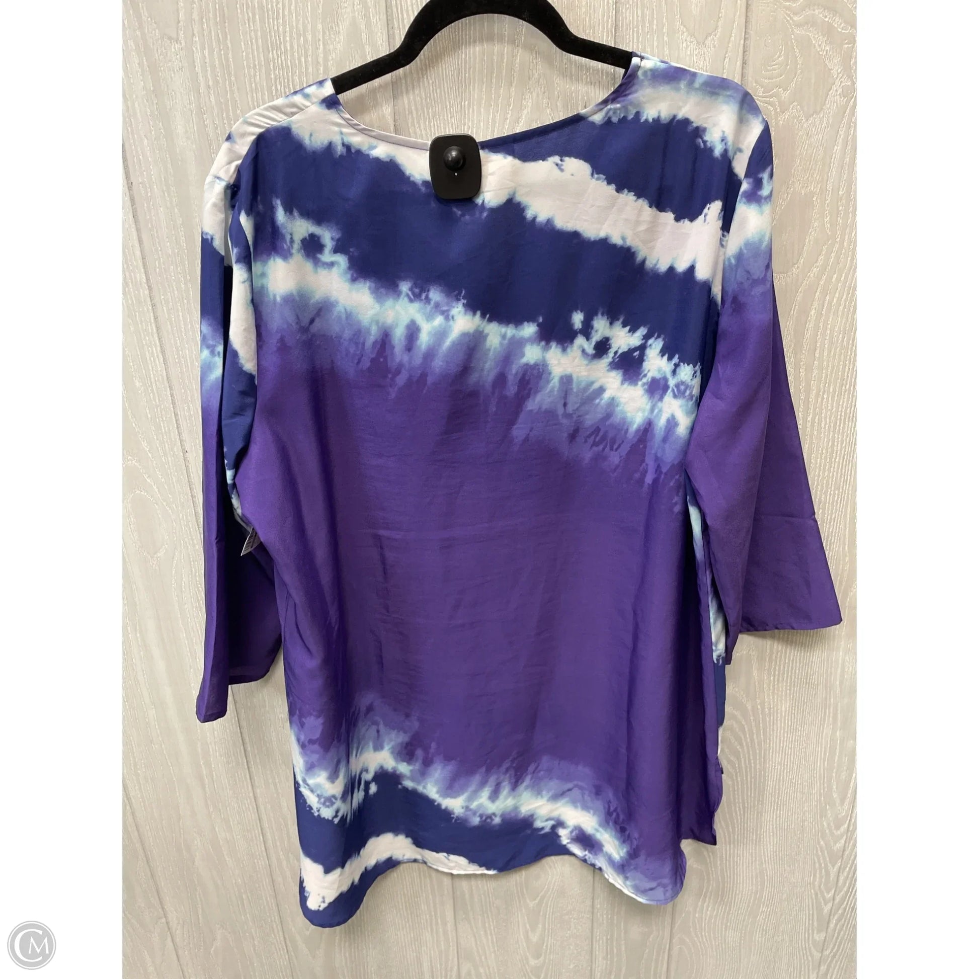 Top 3/4 Sleeve By Chicos In Purple & White, Size: Xl