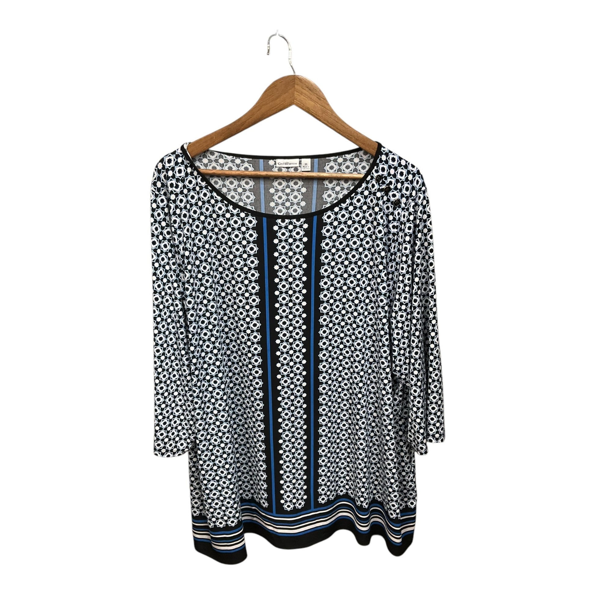 Top 3/4 Sleeve By Croft And Barrow In Black & White, Size:3X