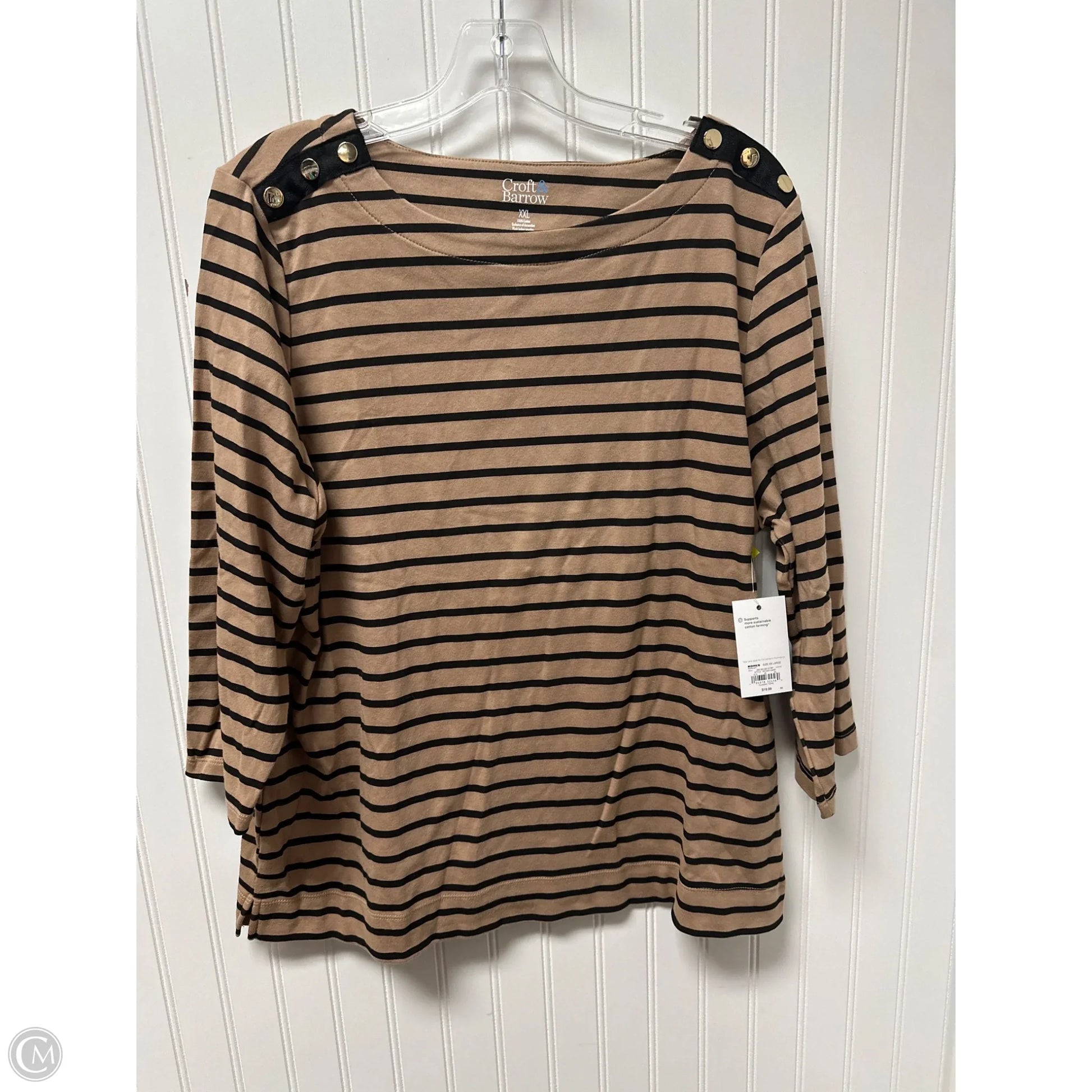 Top 3/4 Sleeve By Croft And Barrow In Brown, Size: 1x