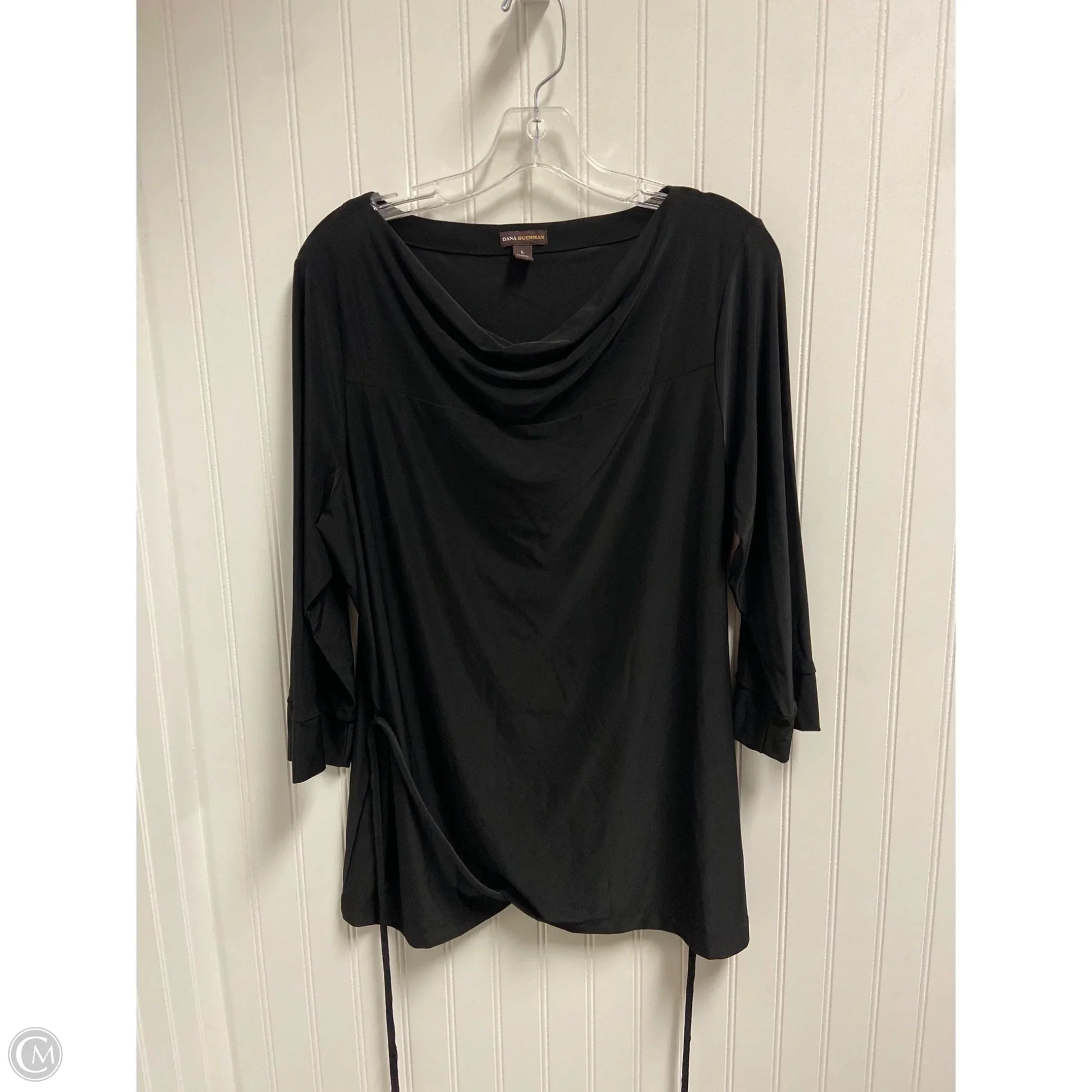 Stay chic with Dana Buchman's black 3/4 sleeve top in size L. Effortlessly elegant, versatile, and comfortable for everyday wear.