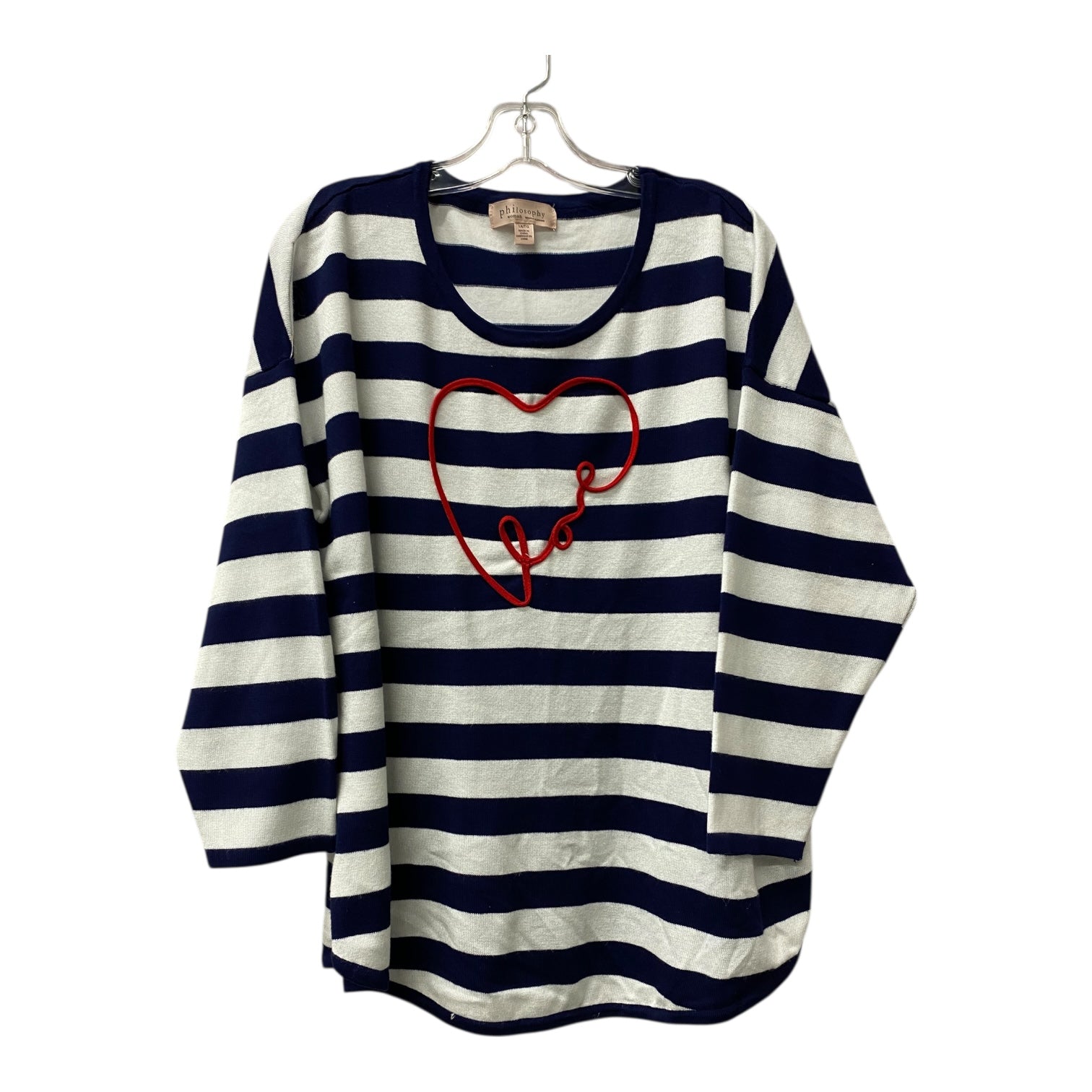 Top 3/4 Sleeve By Philosophy In Blue Red & White, Size:1X