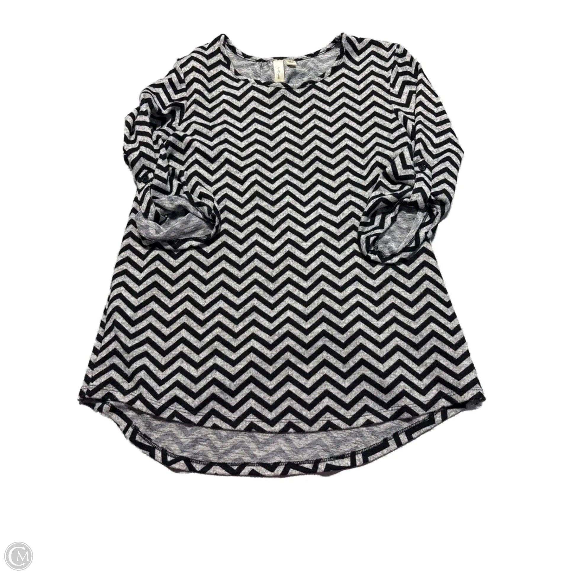 Top 3/4 Sleeve By Tacera In Black & Grey, Size: M