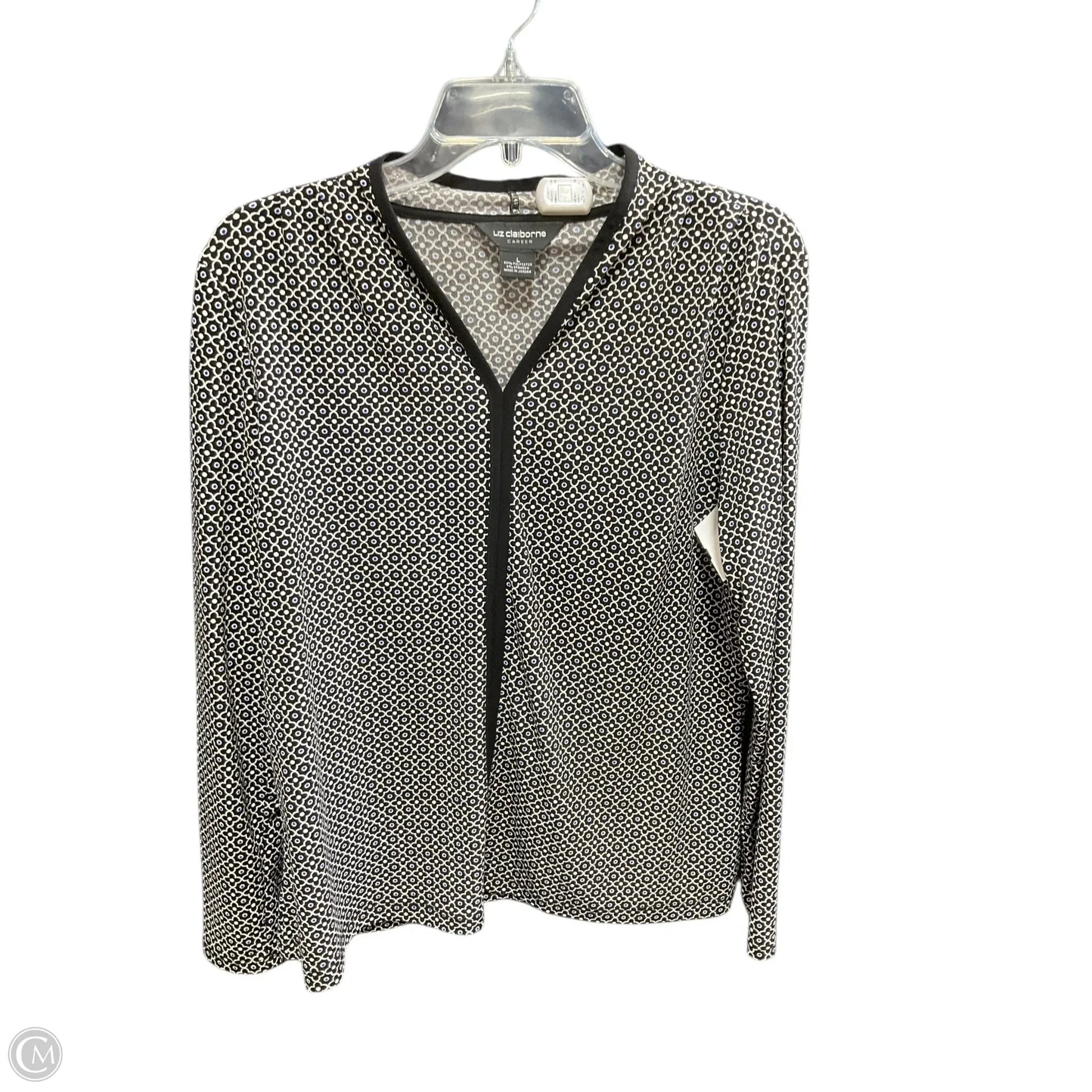 Top Long Sleeve Basic By Liz Claiborne In Black & White, Size: L
