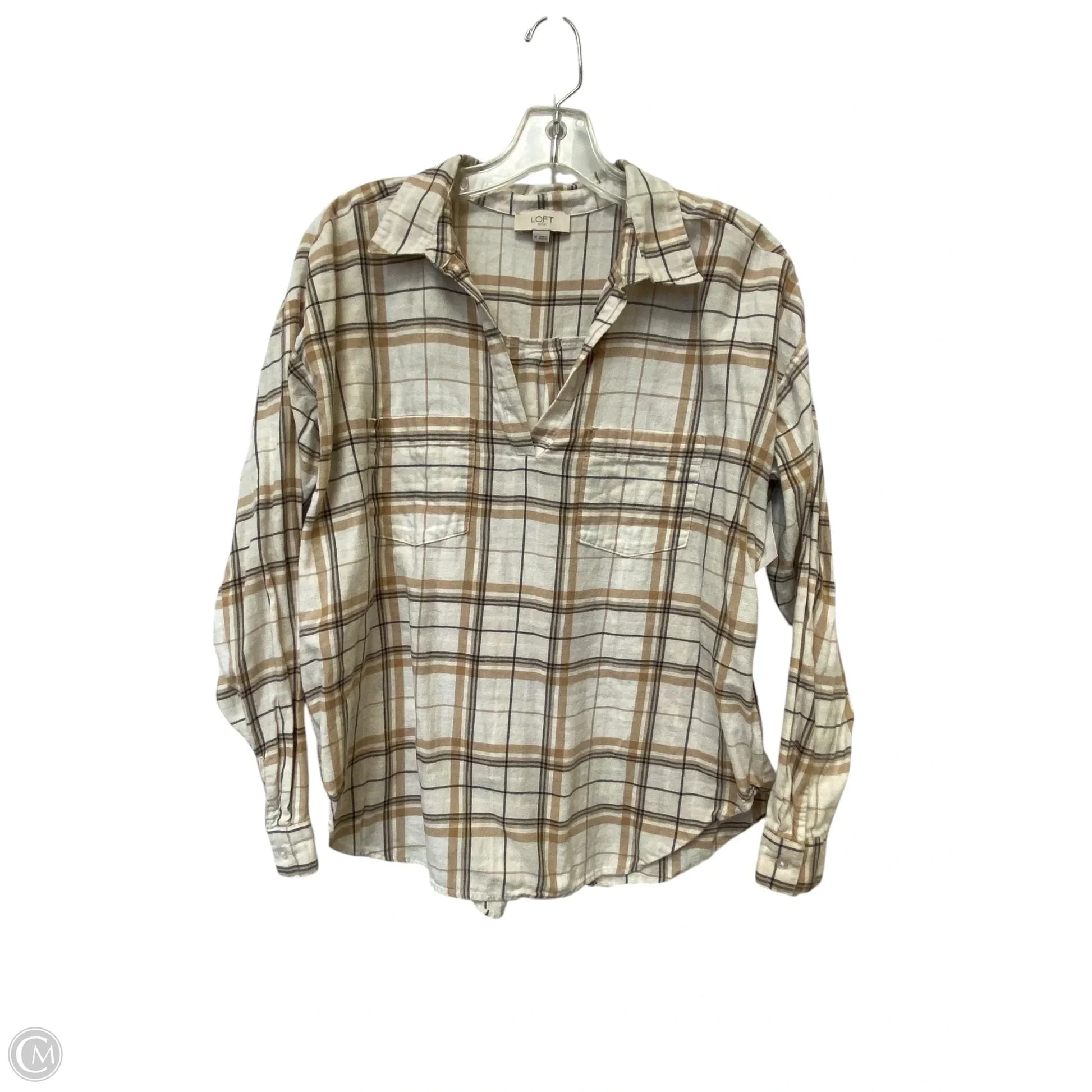 Top Long Sleeve Basic By Loft In Plaid Pattern, Size: M