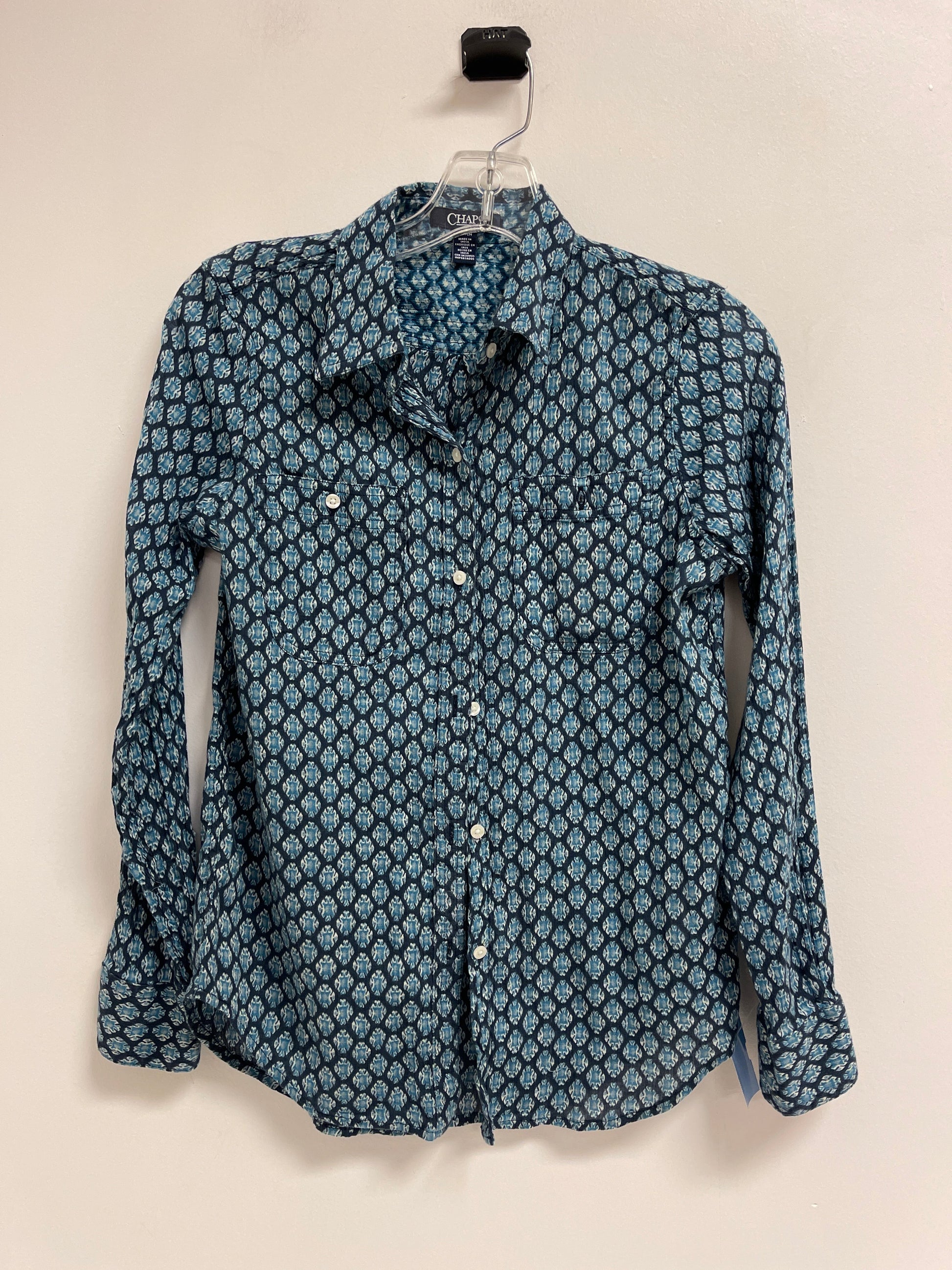 Top Long Sleeve By Chaps In Blue & White, Size: S