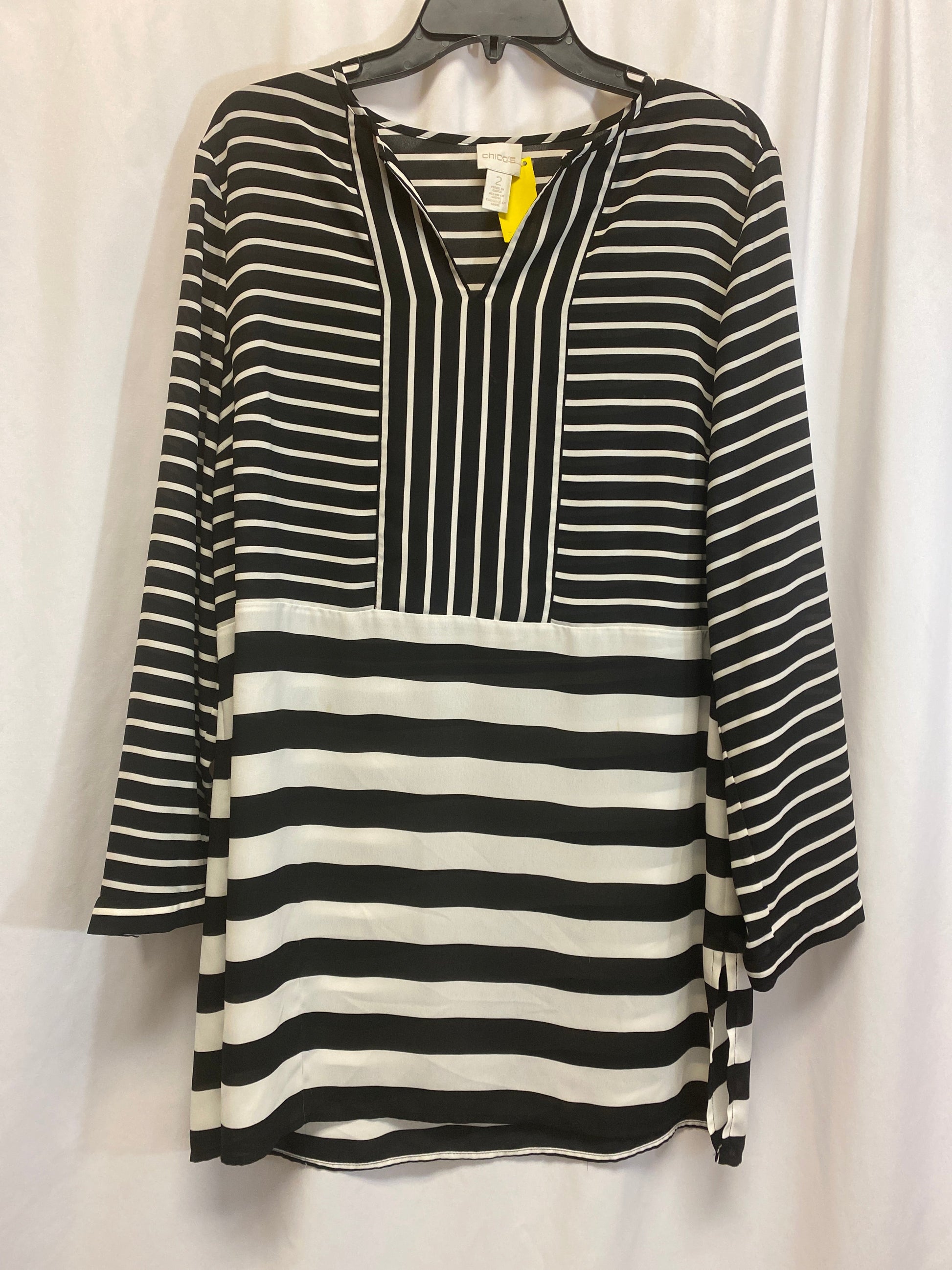 Top Long Sleeve By Chicos In Black & White, Size: L