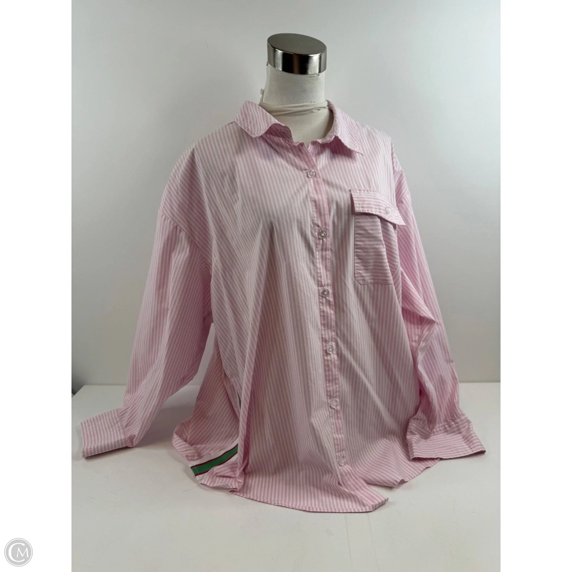 Top Long Sleeve By Clothes Mentor In Pink & White, Size: 1x
