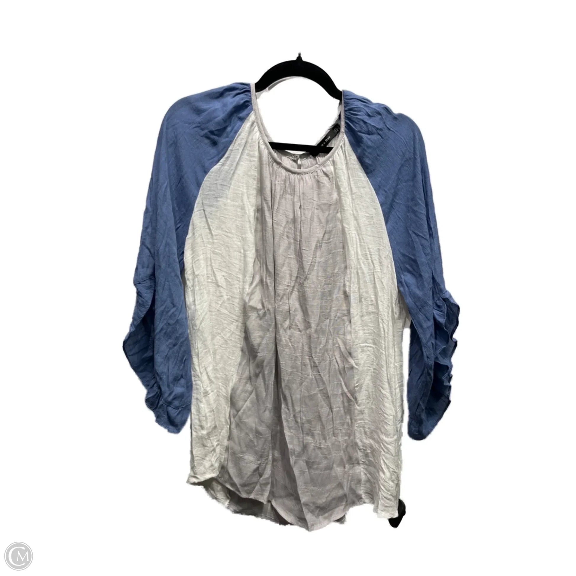 Top Long Sleeve By Doe & Rae In Blue & White, Size: Xxl