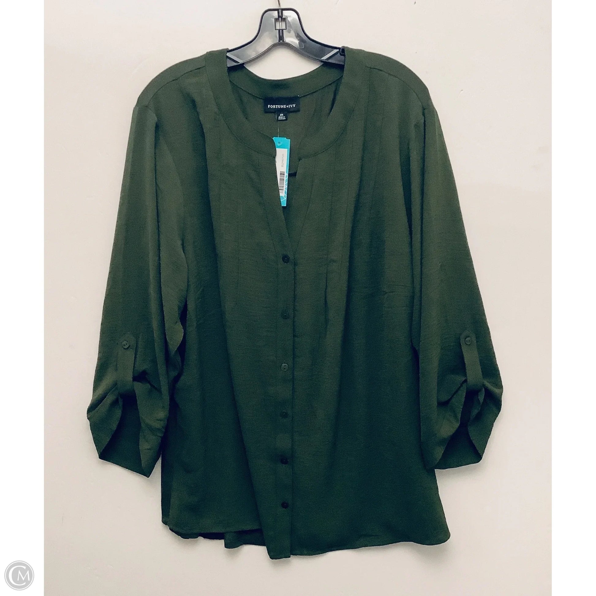 Top Long Sleeve By Fortune & Ivy In Green, Size: 3x