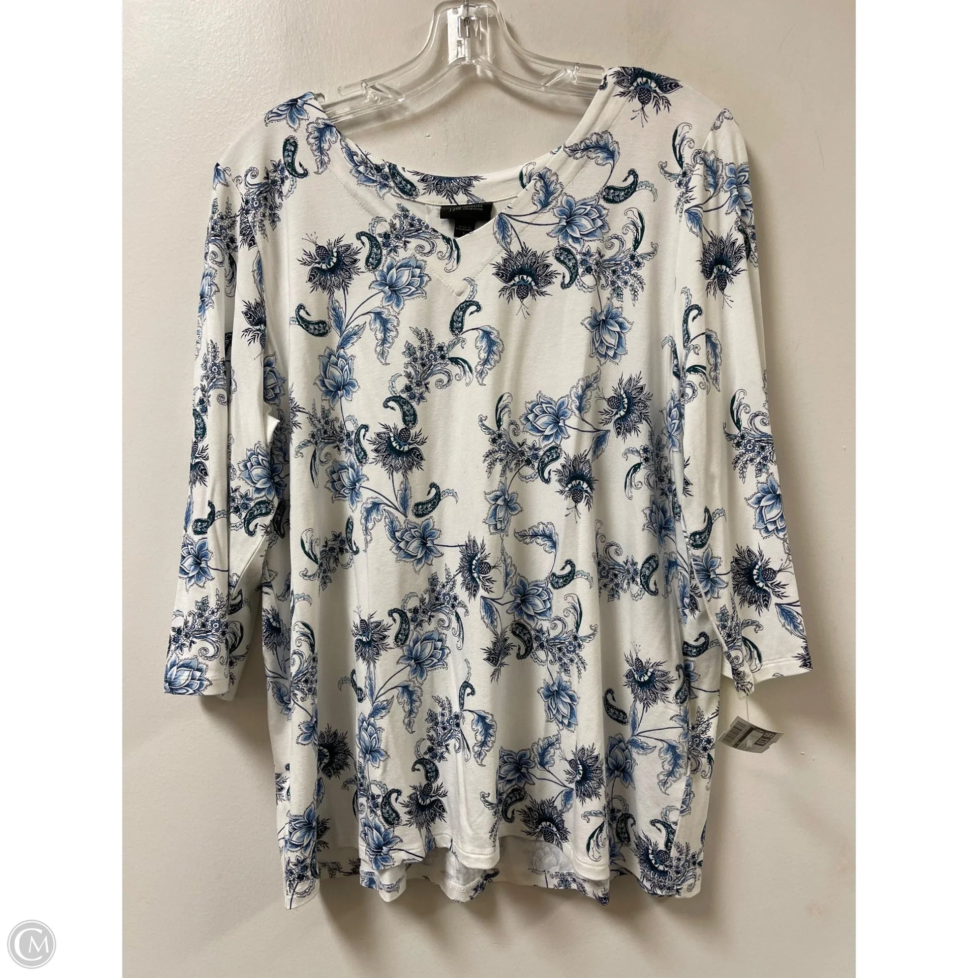 Top Long Sleeve By J. Jill In Blue & White, Size: L