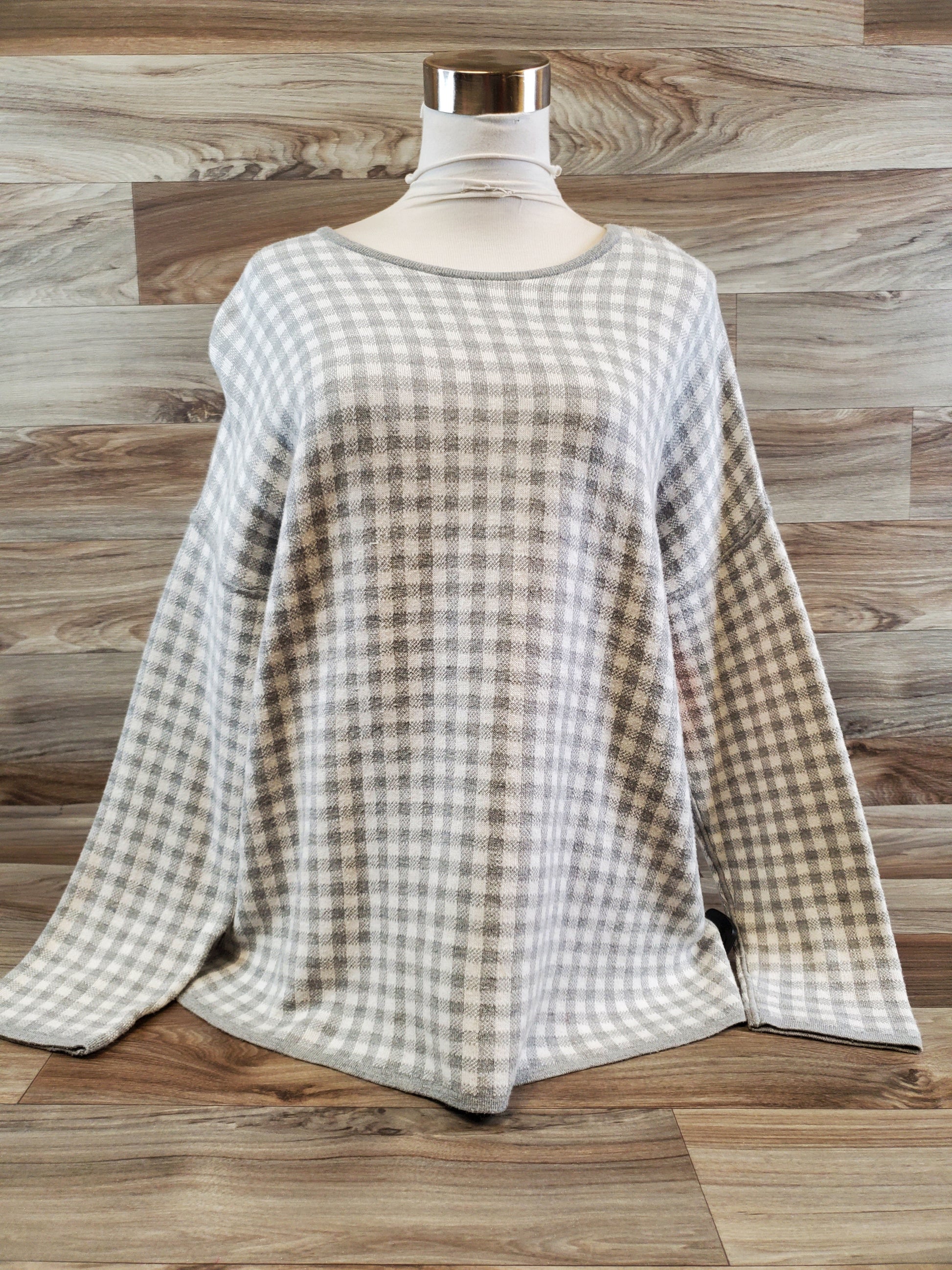 Top Long Sleeve By J. Jill In Grey & White, Size: L