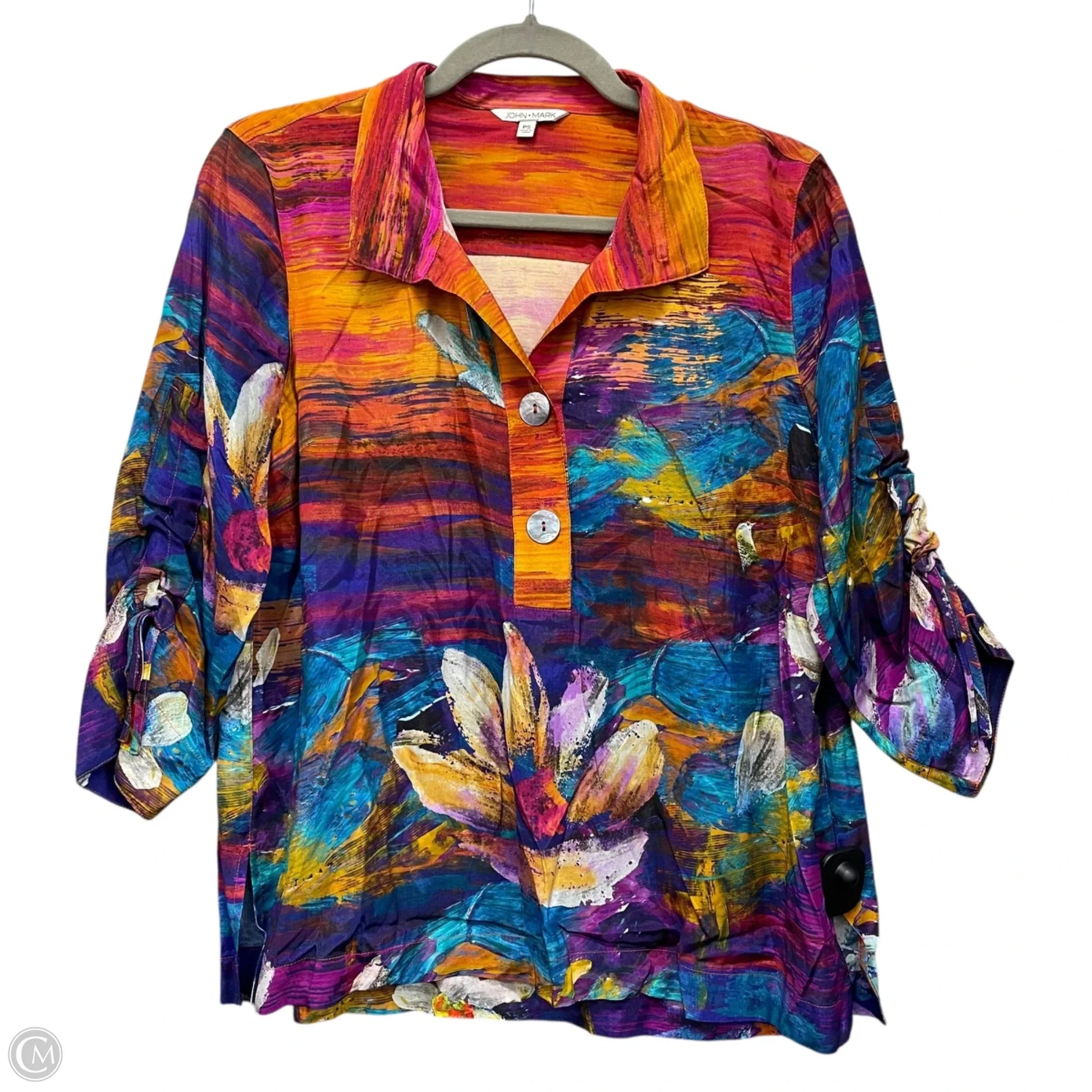 Top Long Sleeve By John Mark In Blue & Orange, Size: Sp