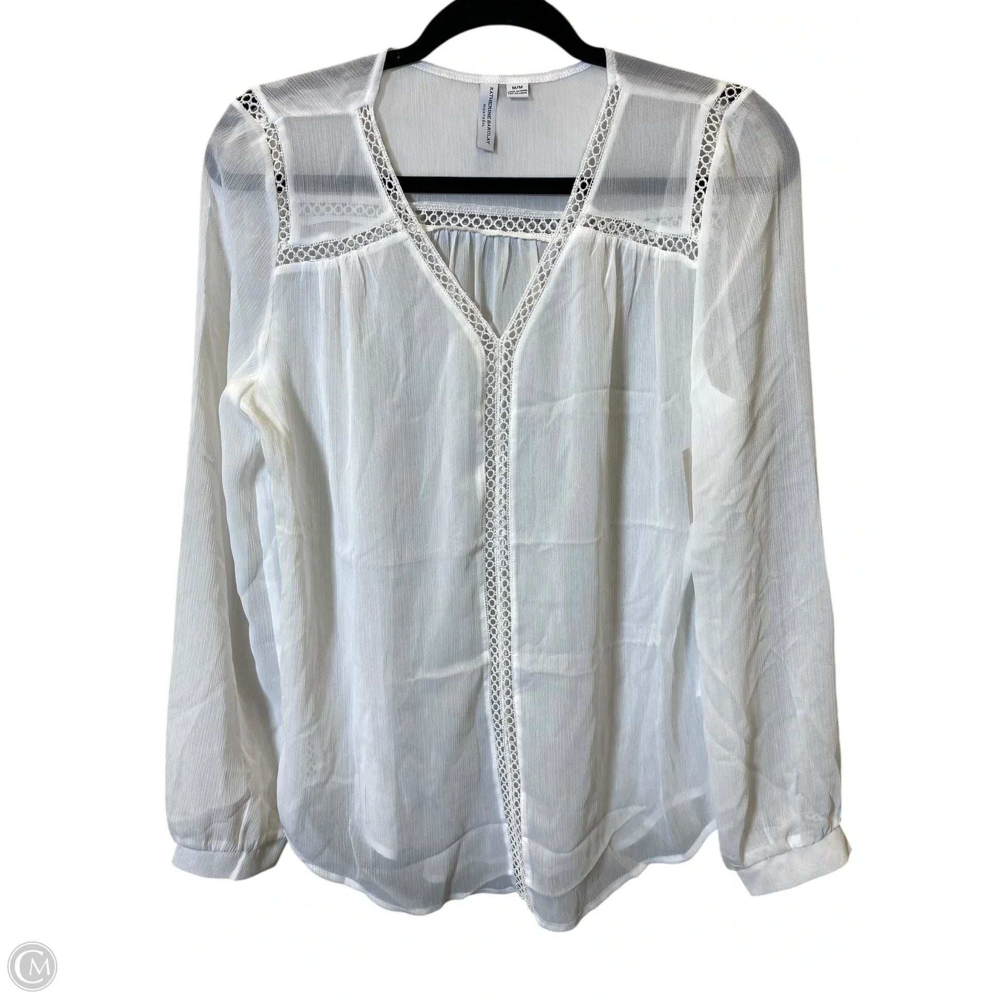Top Long Sleeve By Katherine Barclay In White, Size: M