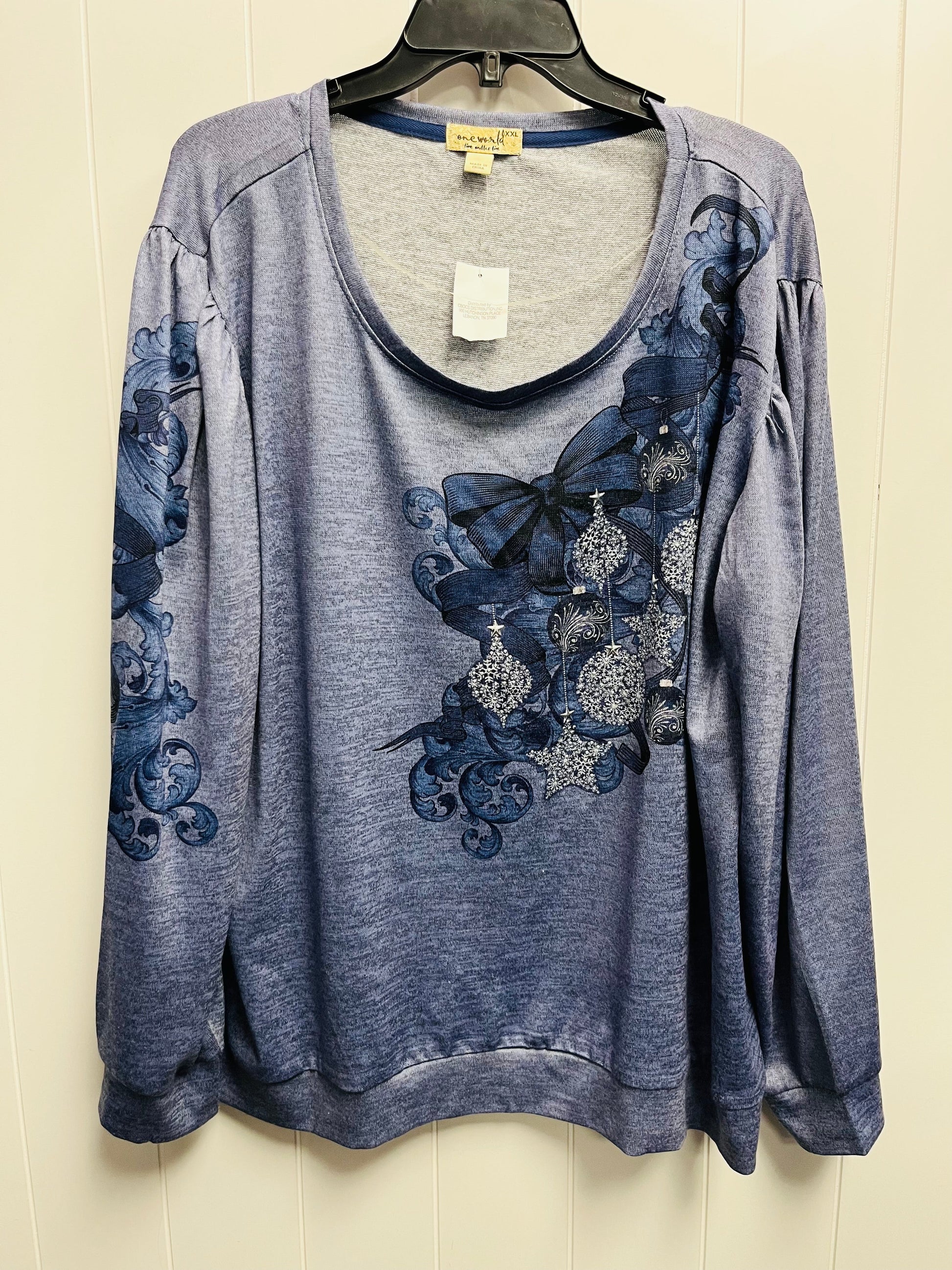 Top Long Sleeve By One World In Blue, Size: Xxl