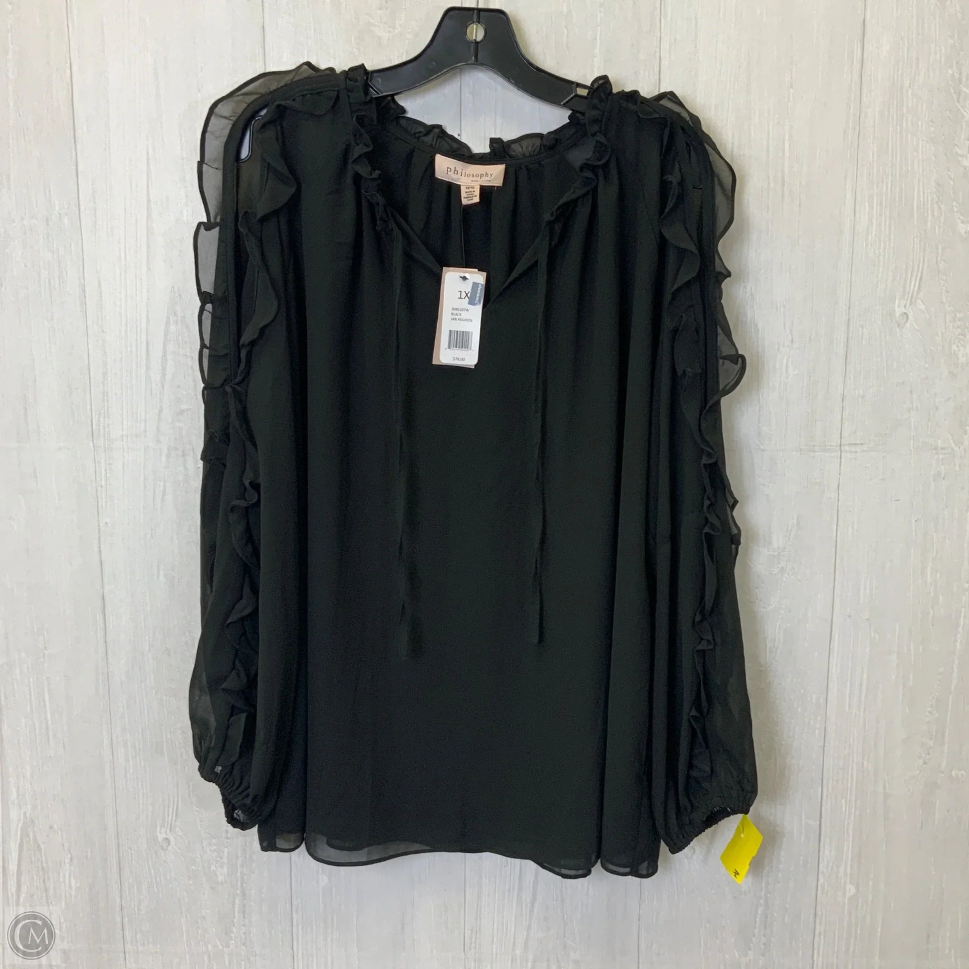 Top Long Sleeve By Philosophy In Black, Size: 1x