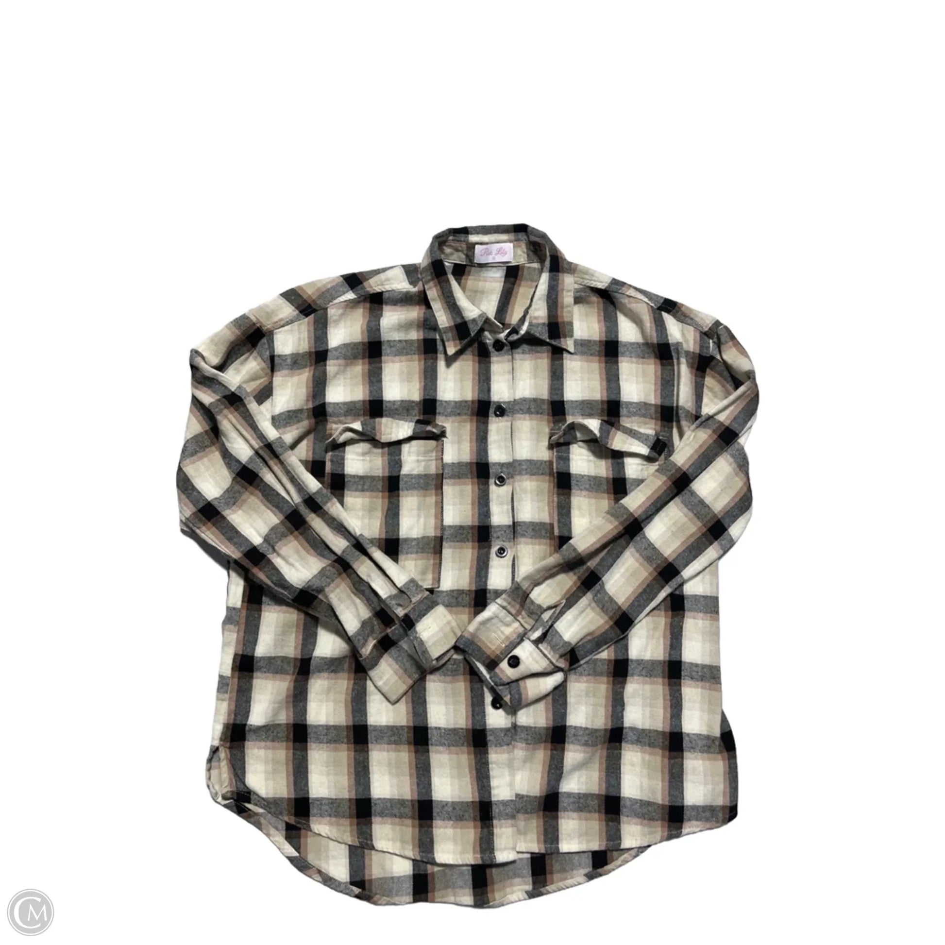 Top Long Sleeve By Pink Lily In Plaid Pattern, Size: M