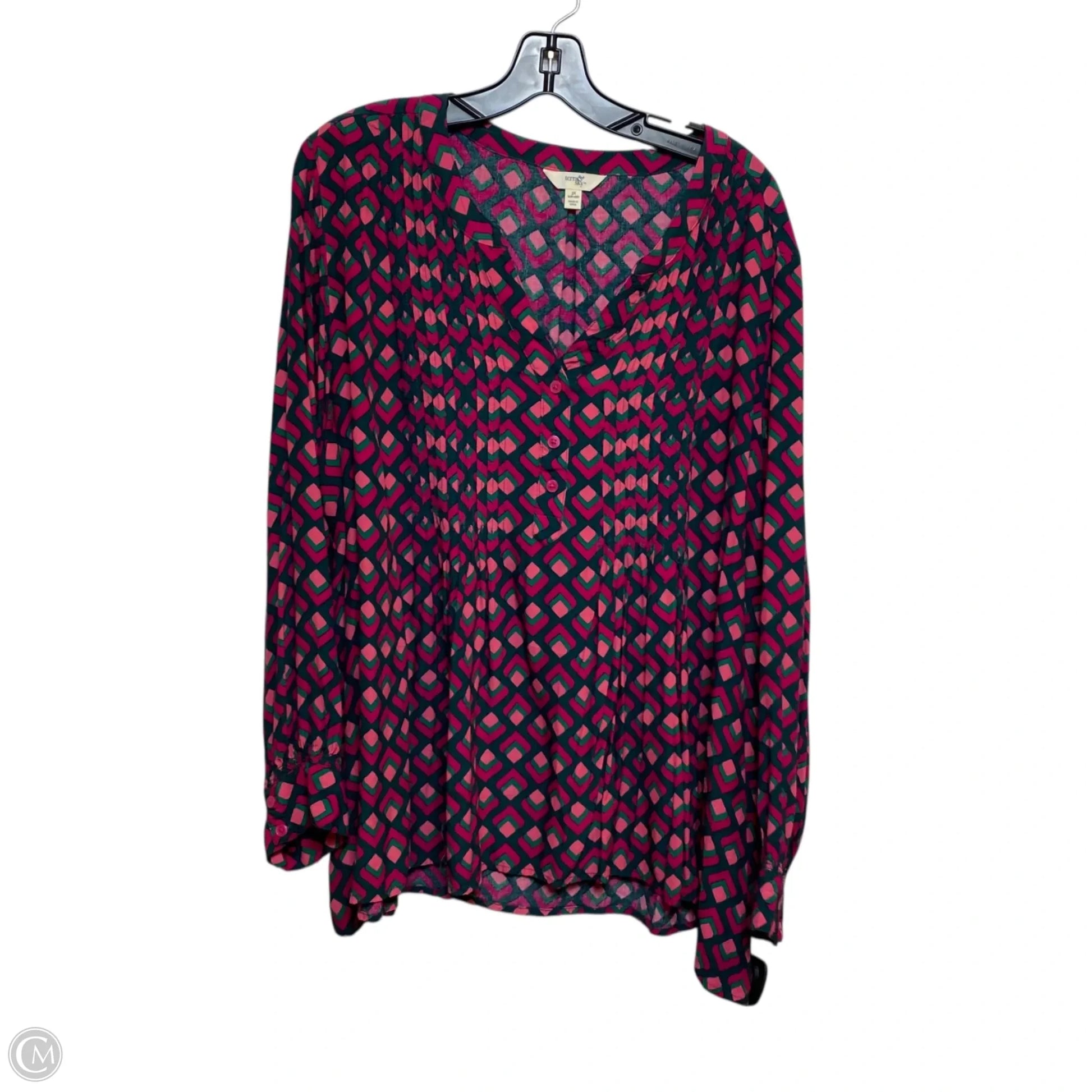 Top Long Sleeve By Terra & Sky In Green & Pink, Size: 3x