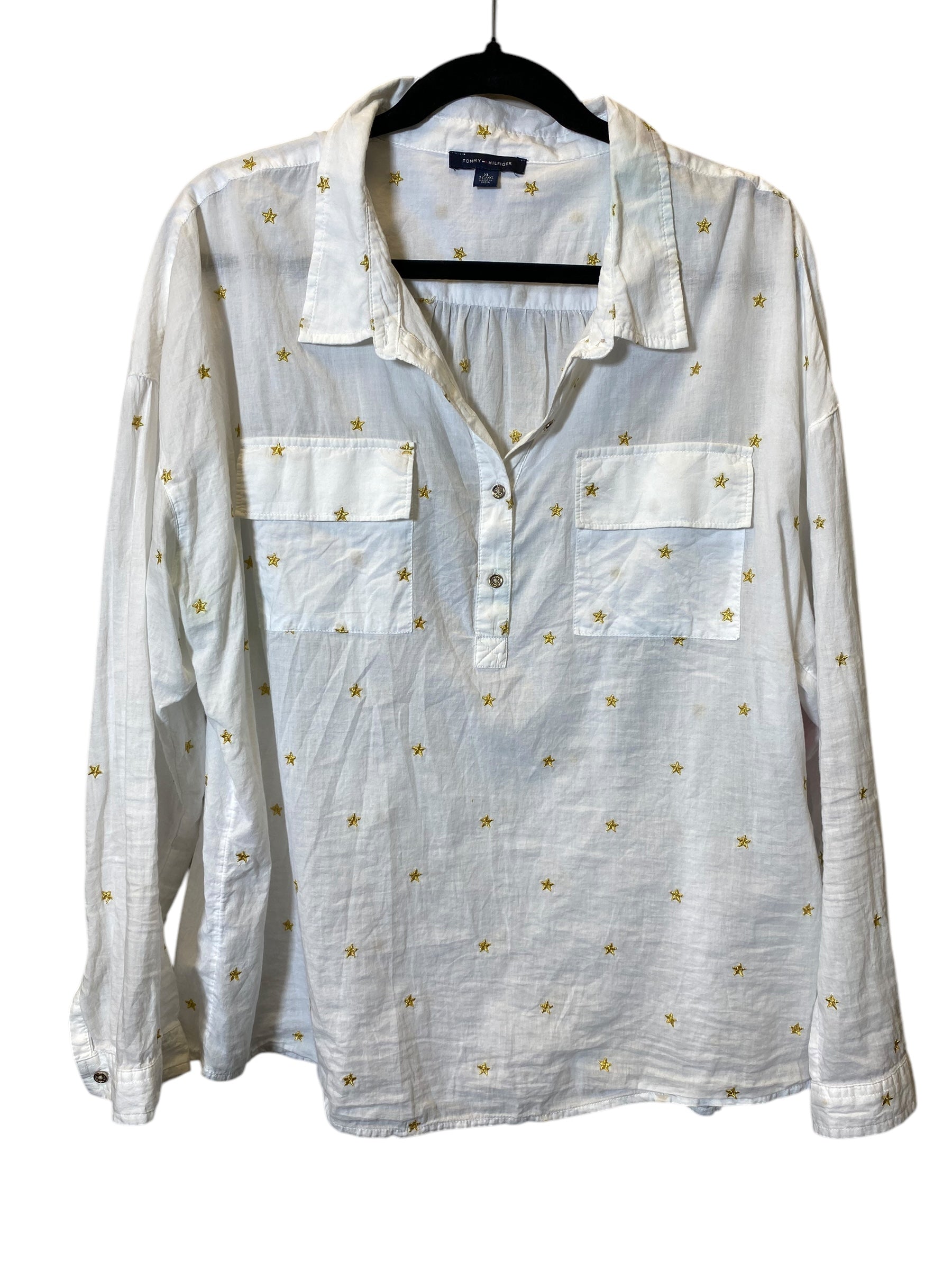 Top Long Sleeve By Tommy Hilfiger In Gold & White, Size: Xl