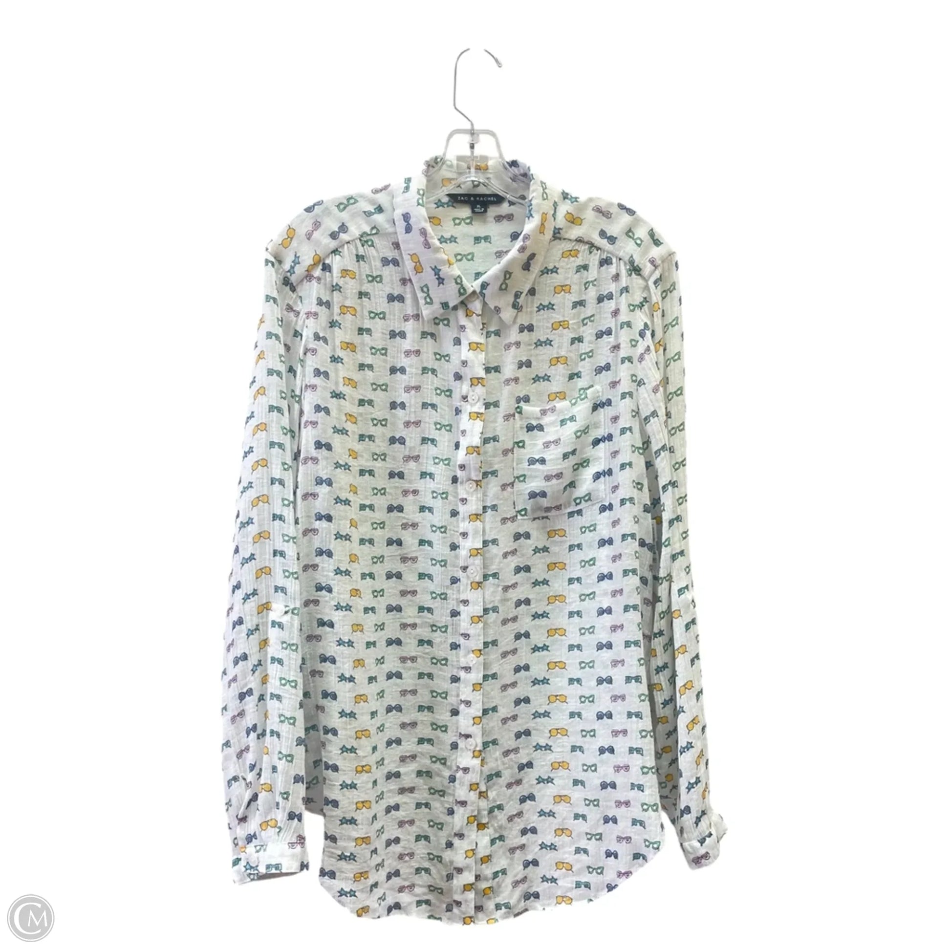 Top Long Sleeve By Zac And Rachel In White & Yellow, Size: Xl