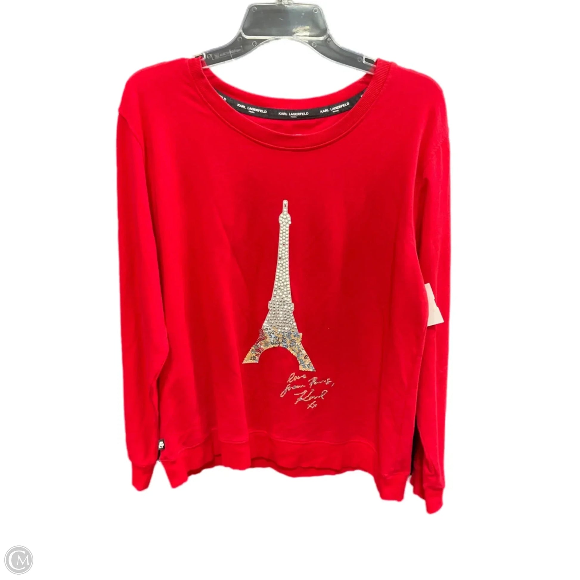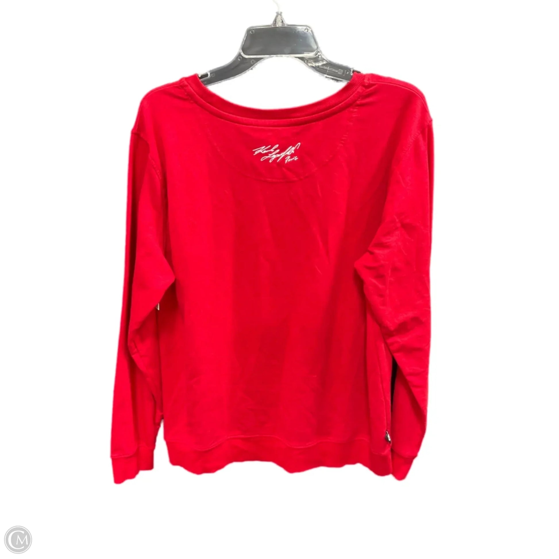 Top Long Sleeve Designer By Karl Lagerfeld In Red & Silver, Size: L