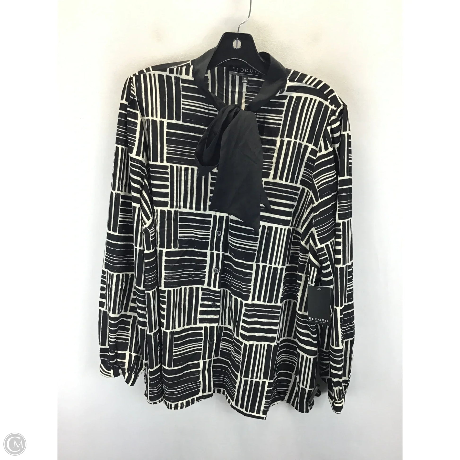 Top LS By Eloquii In Black & White, Size: 18