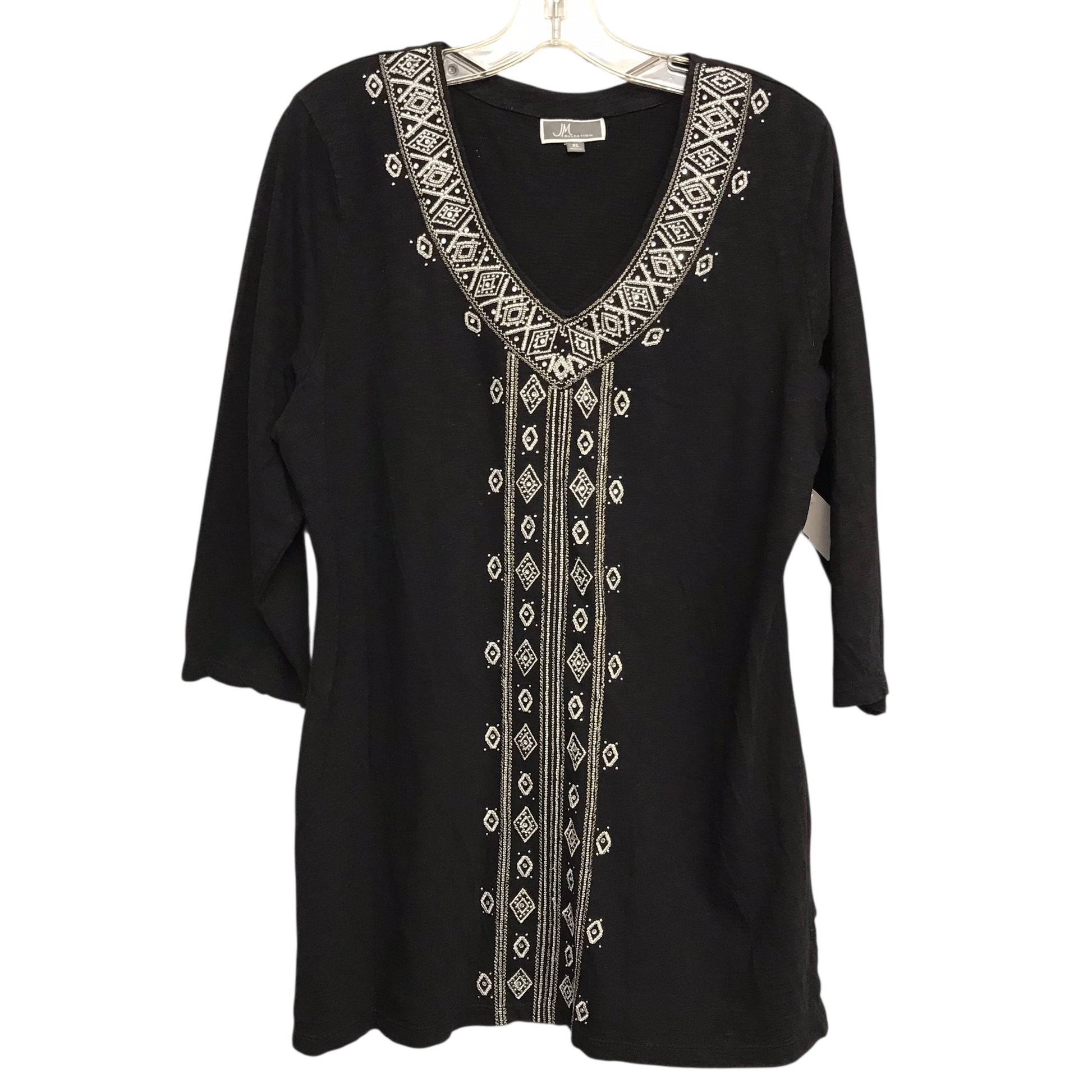 Top Ls By Jm Collections In Black & White, Size:Xl