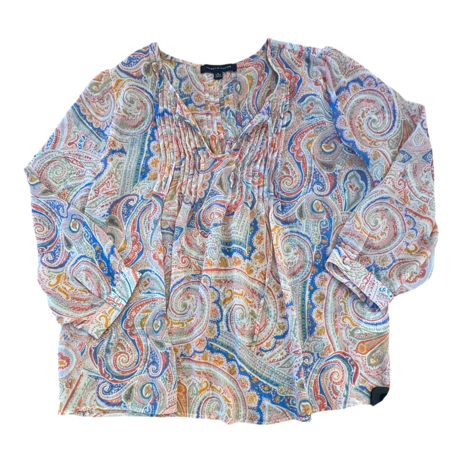 Tommy Hilfiger's Top in Blue & Pink, Size XL, exudes casual sophistication. Soft fabric, flattering fit, and iconic branding.