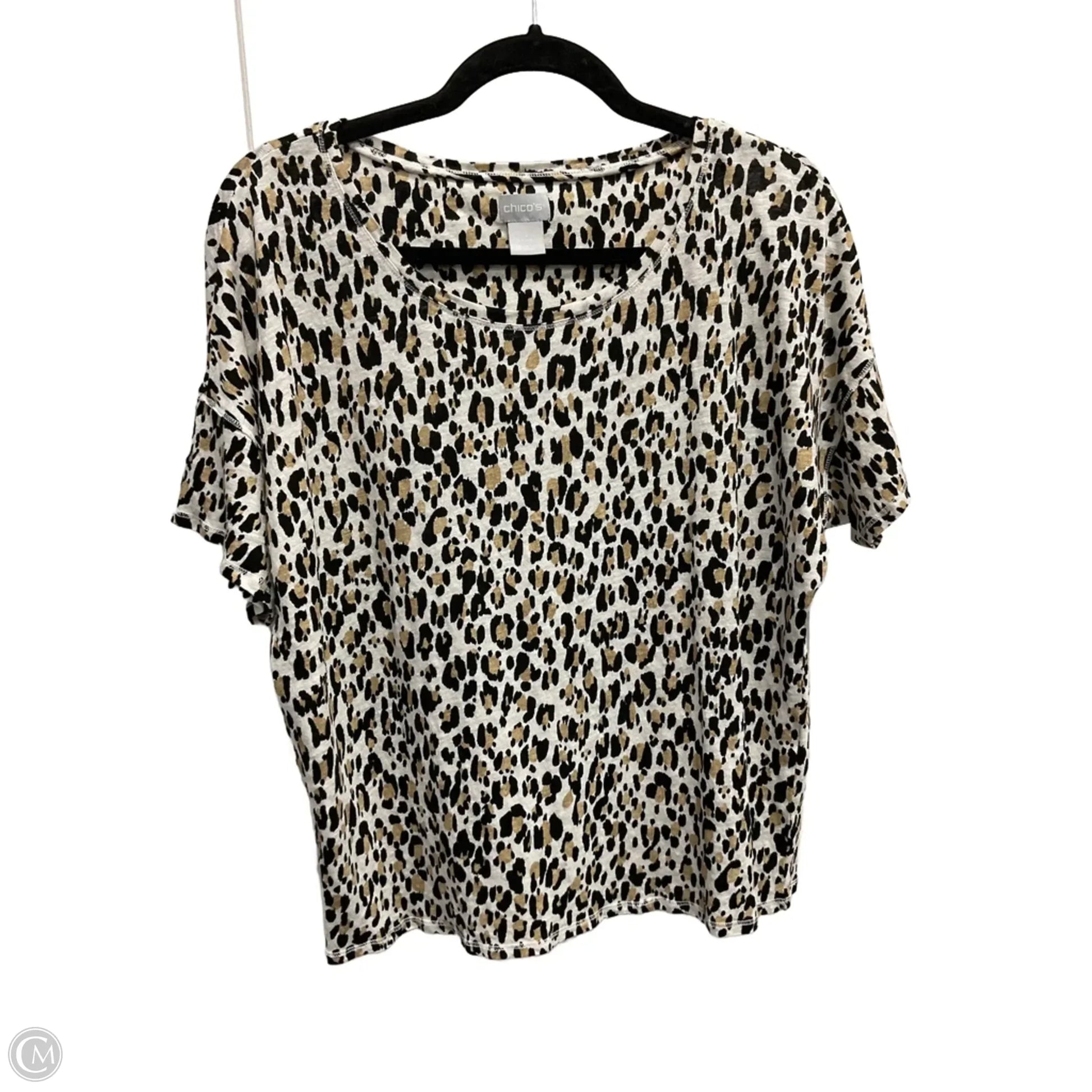 Top Short Sleeve Basic By Chicos In Leopard Print, Size: L