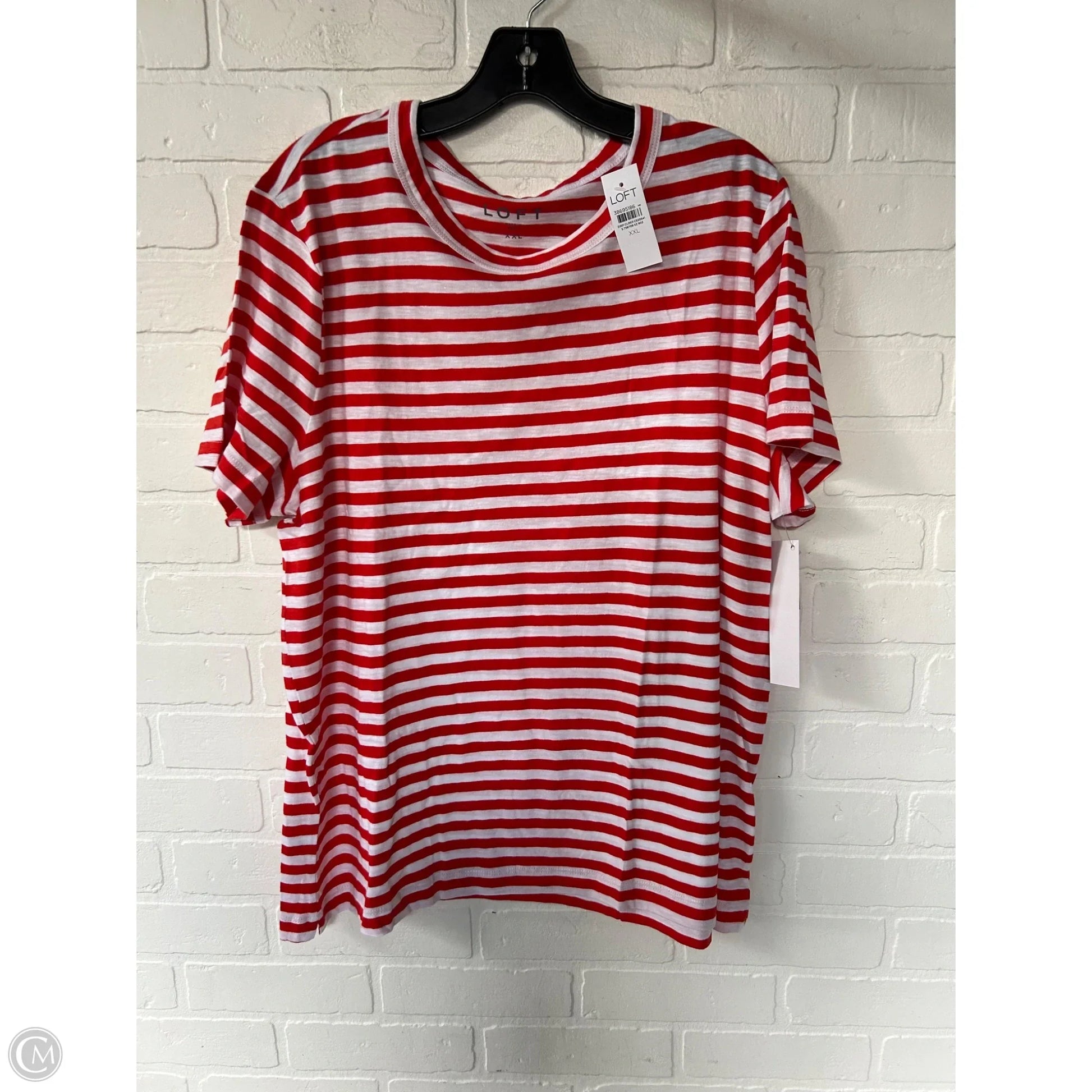 Top Short Sleeve Basic By Loft In Red & White, Size: Xxl