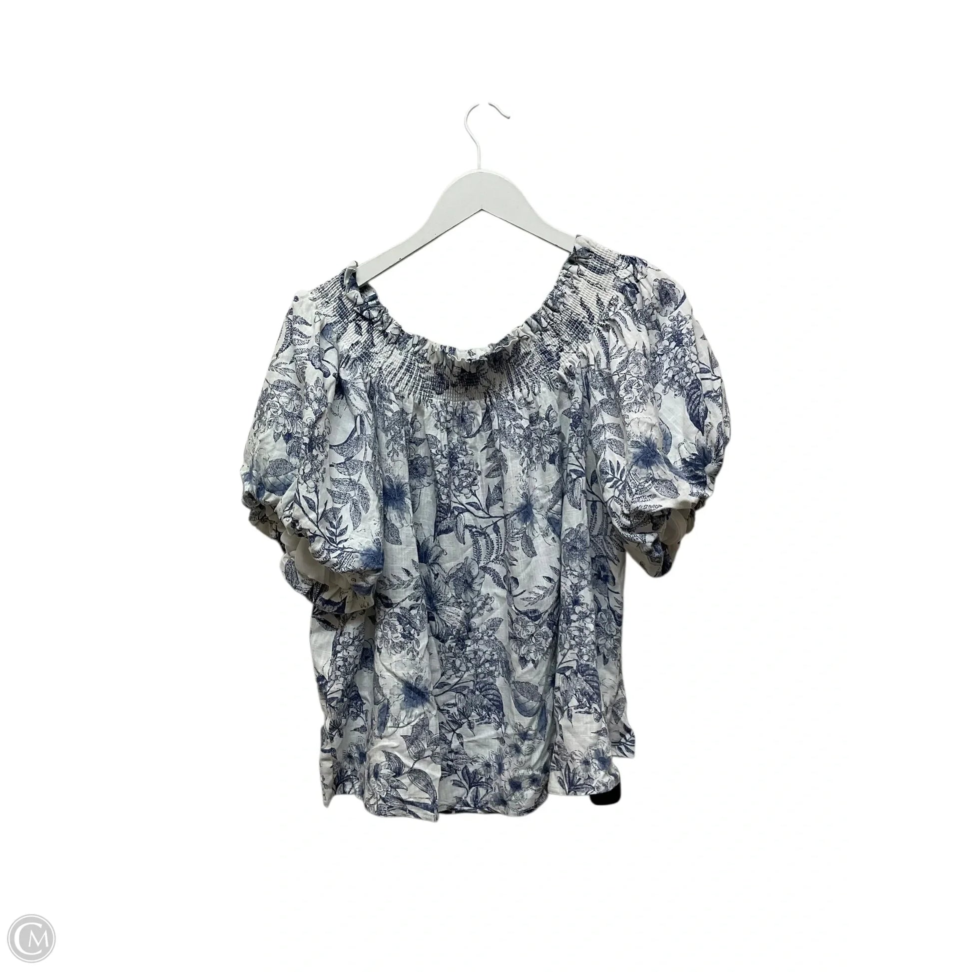 Top Short Sleeve By Cece In Blue & White, Size: L