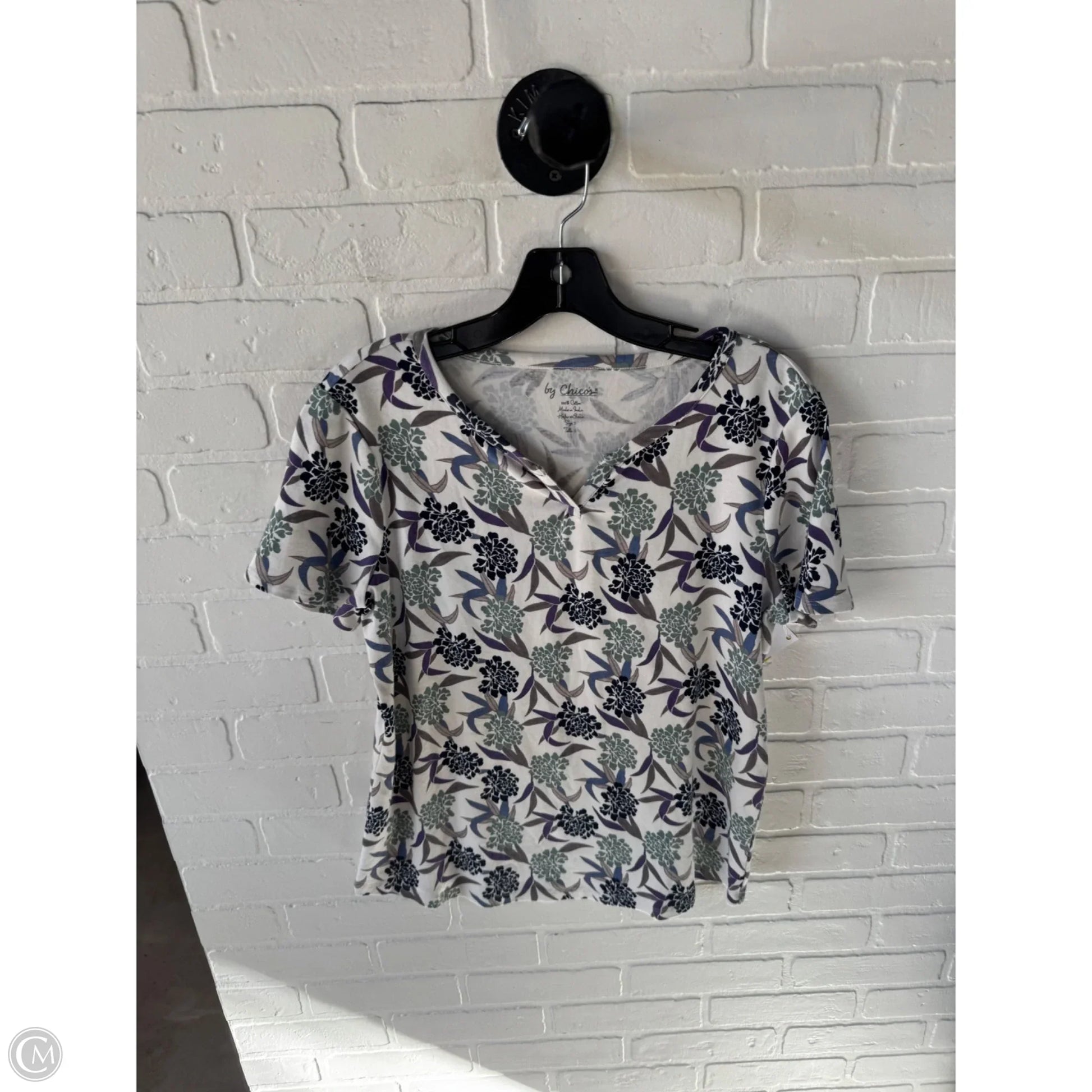 Top Short Sleeve By Chicos In Cream & Purple, Size: L