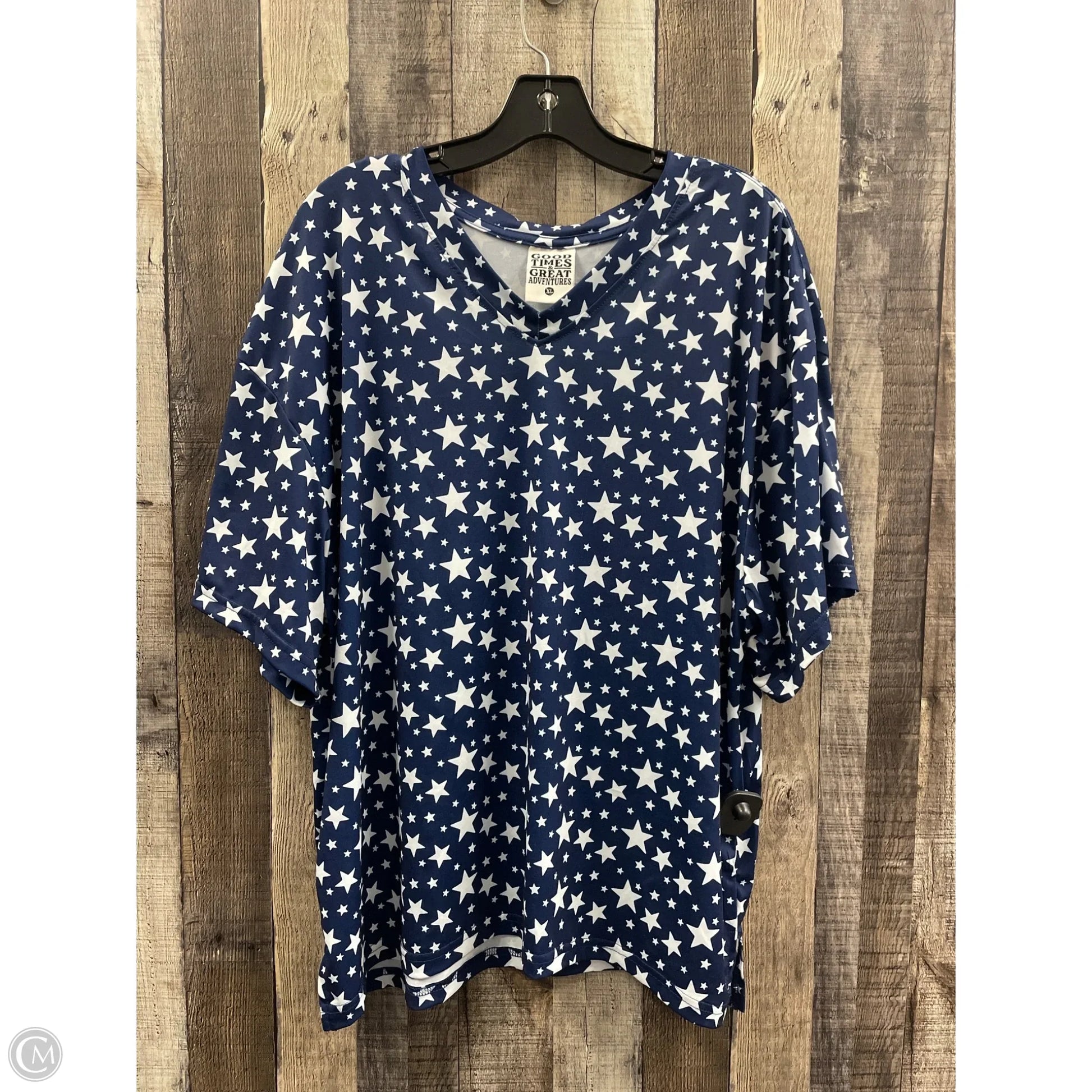 Top Short Sleeve By Cme In Blue & White, Size: Xl