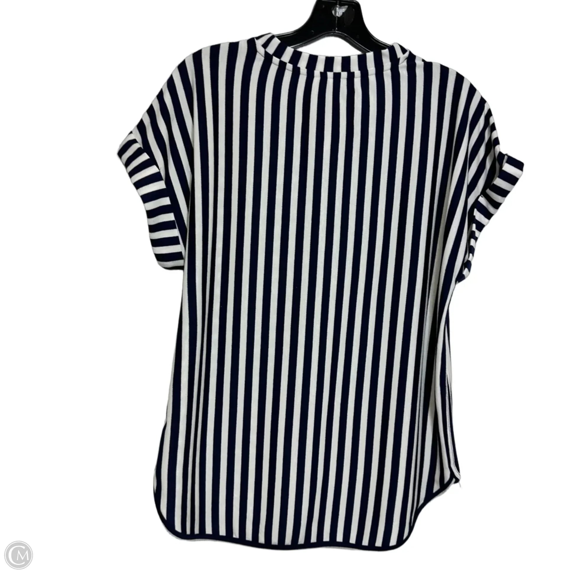 Top Short Sleeve By Cupio In navy Striped Pattern, Size: L
