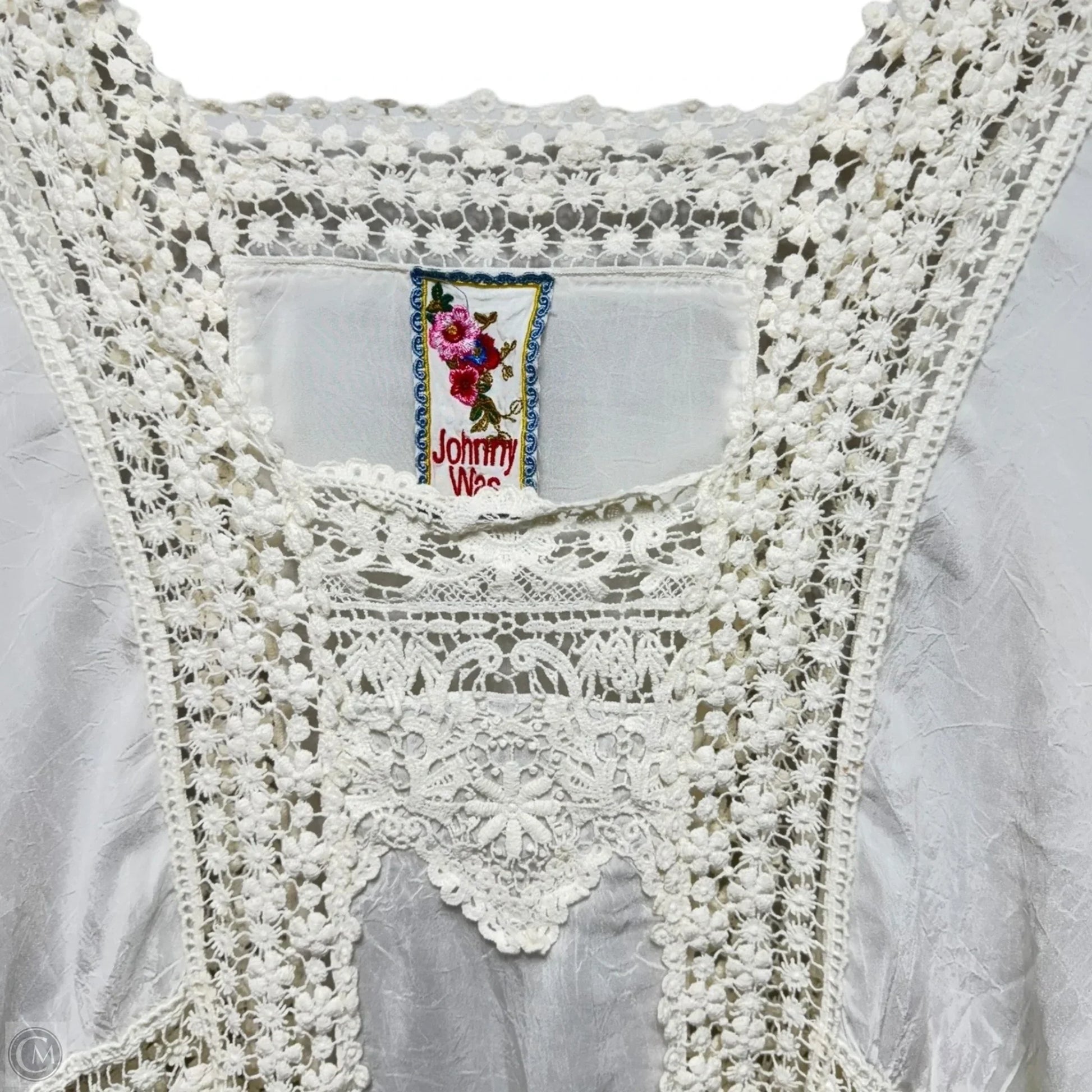 Crochet Lace Embroidered Tunic Short Sleeve By Johnny Was In Cream, Size: S
