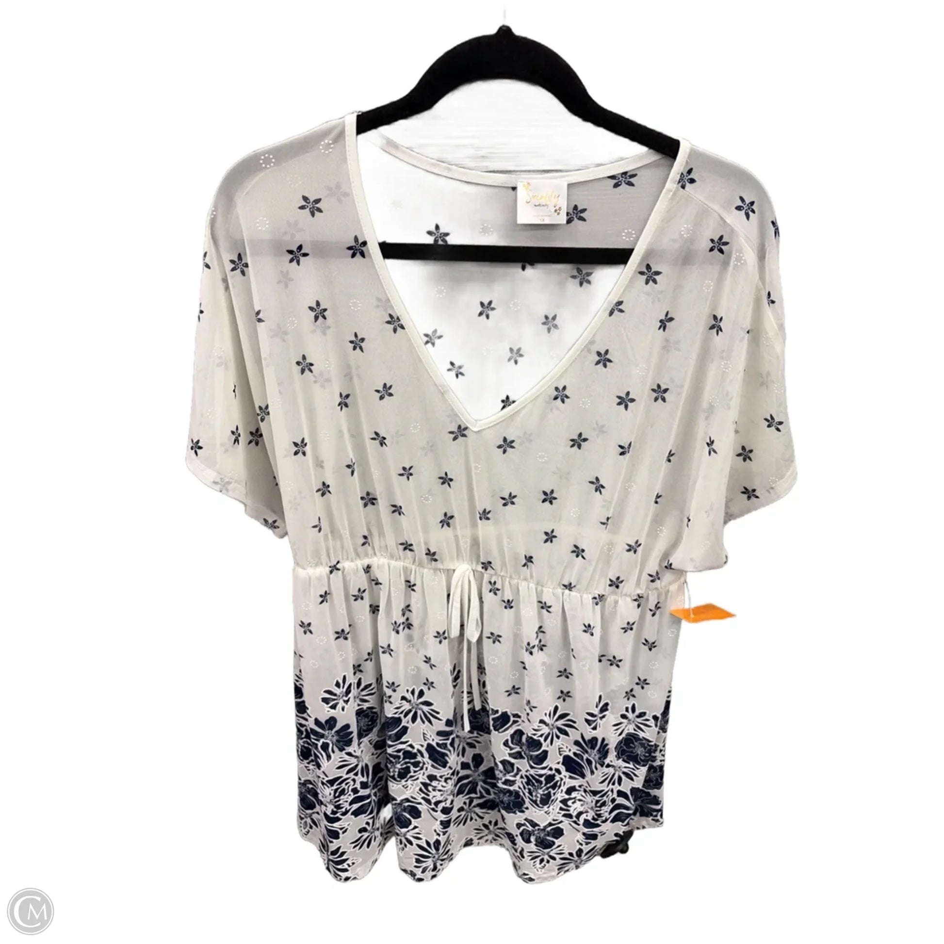 Top Short Sleeve By Siren Lily In Blue & White, Size: 1x