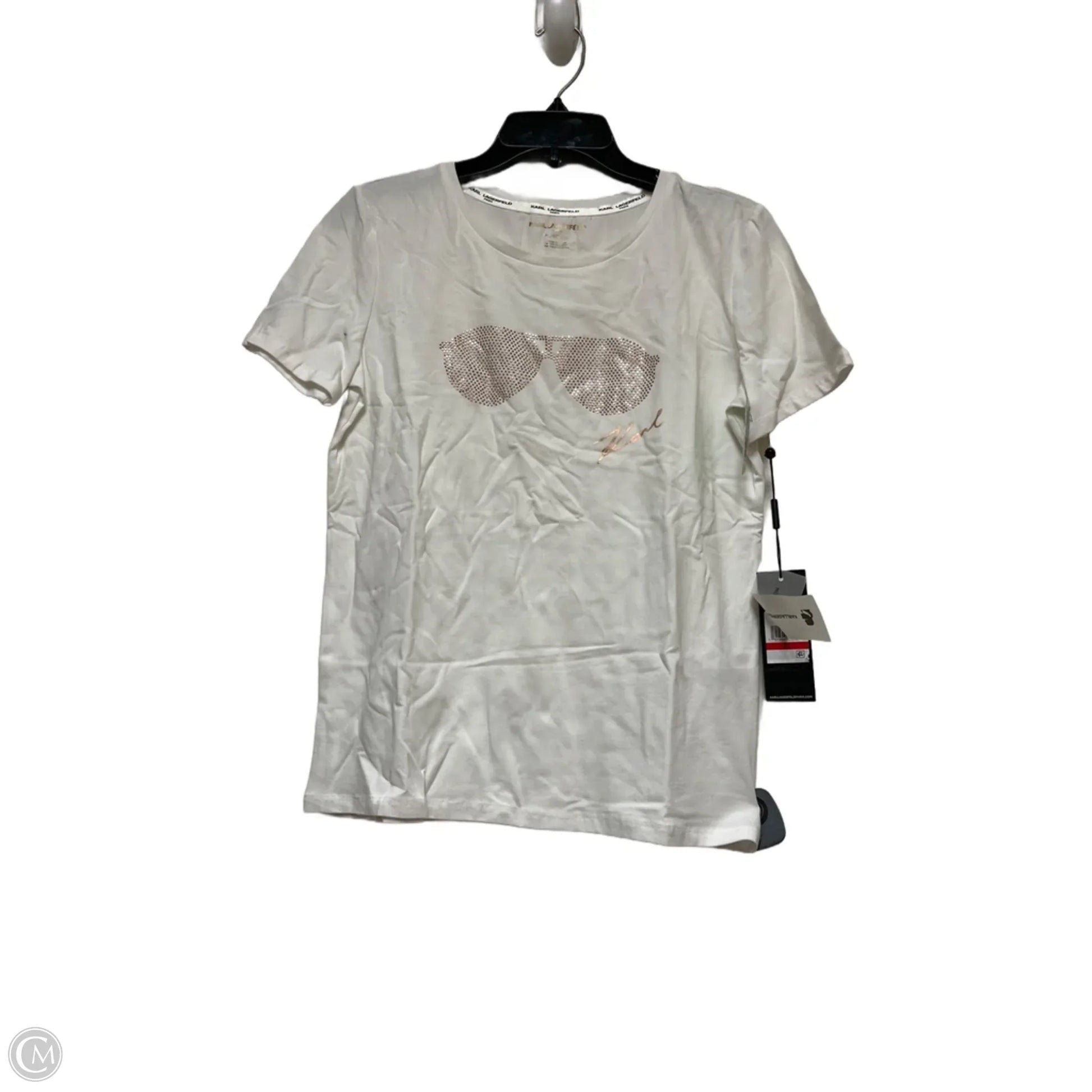 Top Short Sleeve Designer By Karl Lagerfeld In Gold & White, Size: Xs