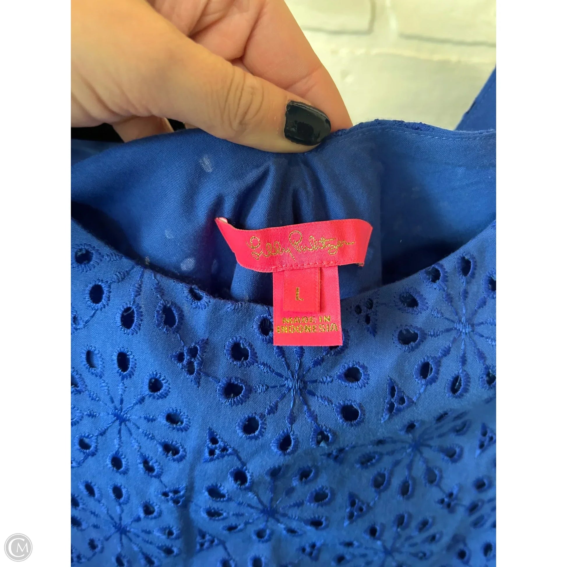 Top Short Sleeve Designer By Lilly Pulitzer In Blue, Size: L