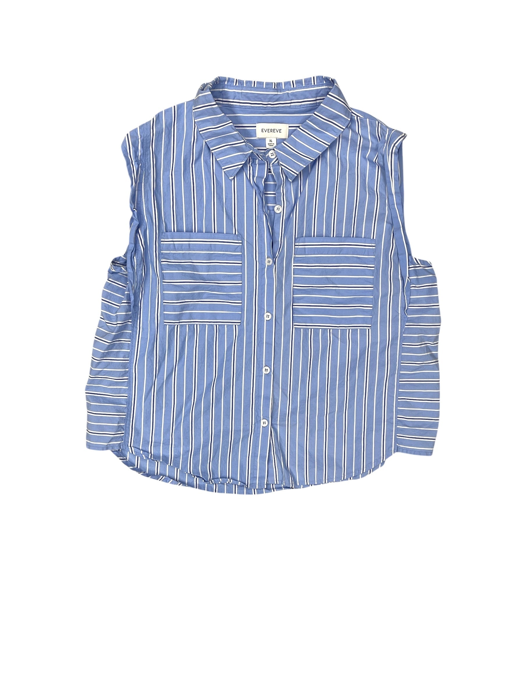 Top Sleeveless By Evereve In Blue & White, Size: Xl