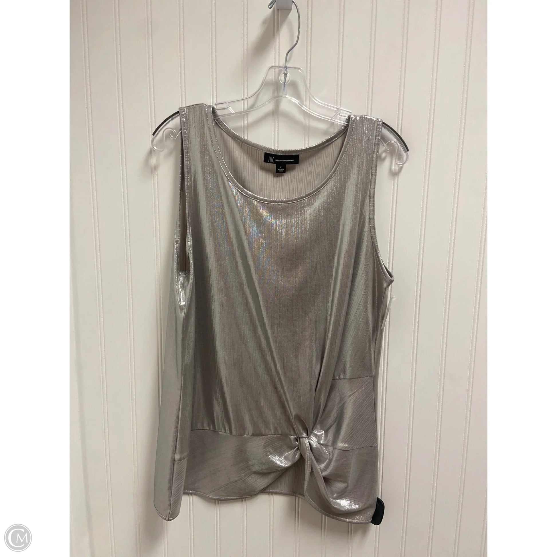 Add a touch of elegance to your wardrobe with this stunning silver sleeveless top from INC in size L.