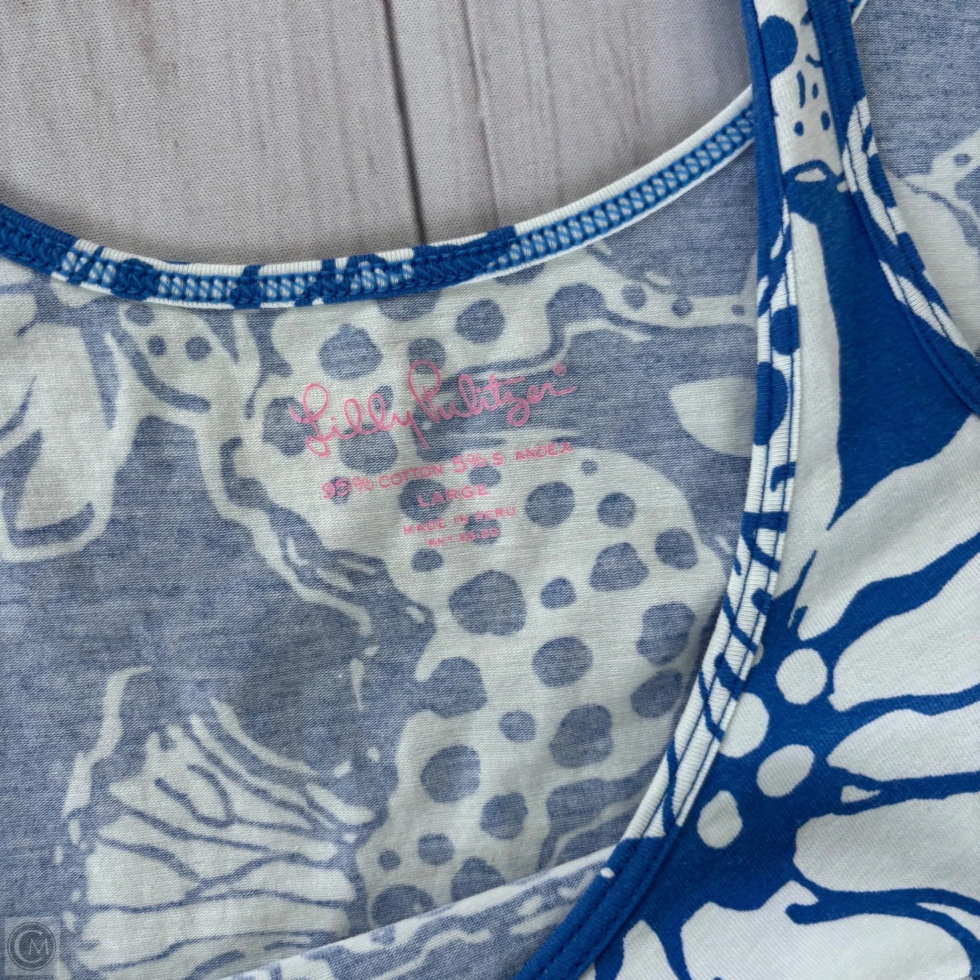 Top Sleeveless Designer By Lilly Pulitzer In Blue & White, Size: L