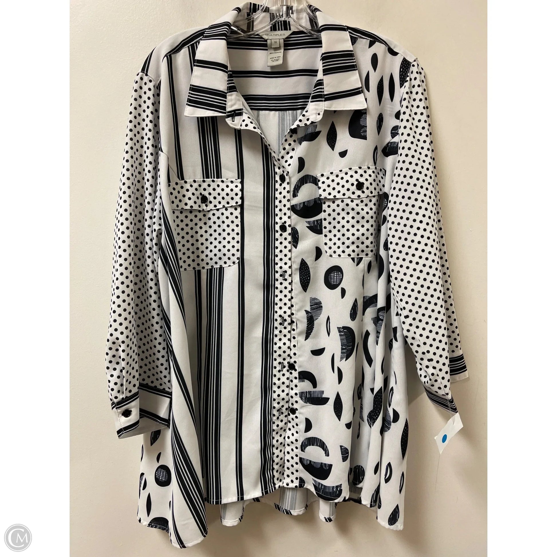Tunic Long Sleeve By Multiples In Black & White, Size: 1x