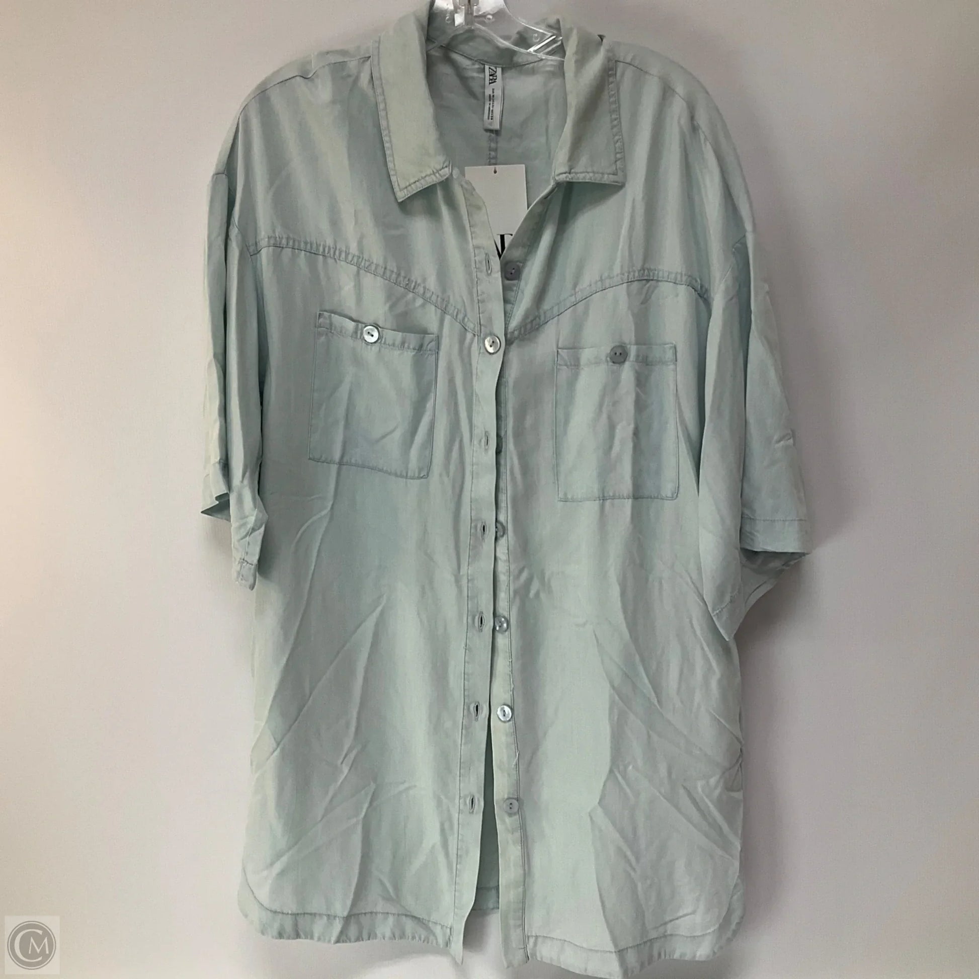 Tunic Long Sleeve By Zara In Blue Denim, Size: M