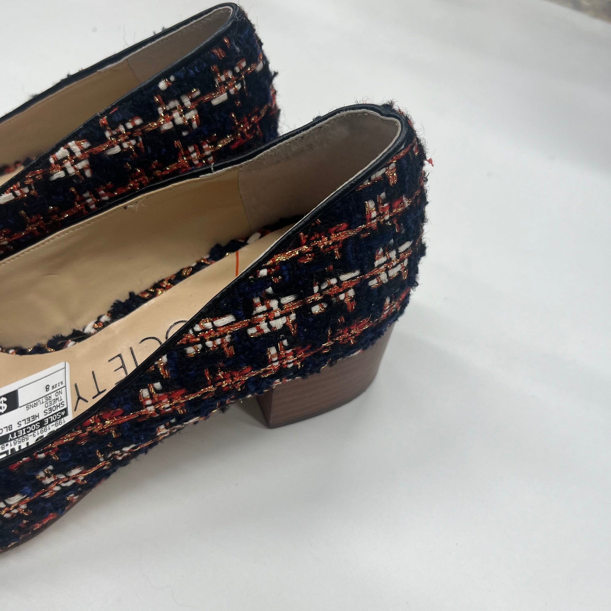 Tweed Shoes Heels Block Sole Society, Size 8