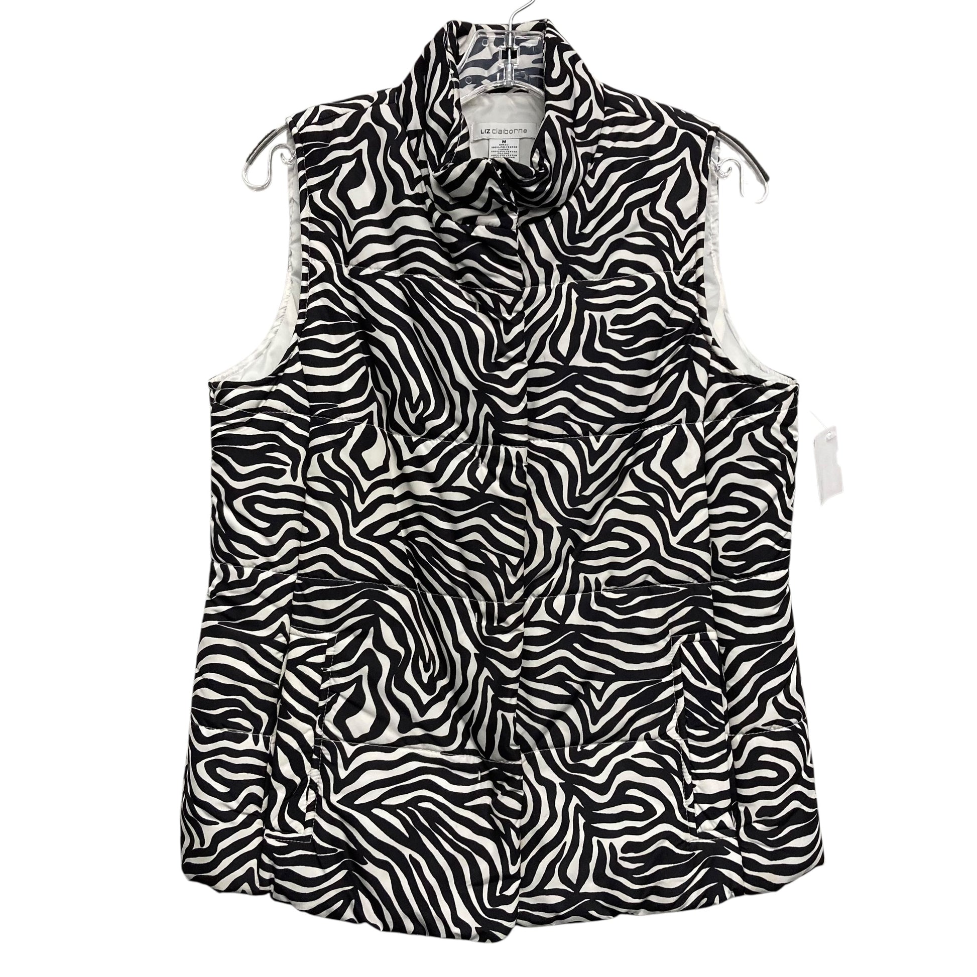 Vest Puffer & Quilted By Liz Claiborne In Black & Cream, Size:M